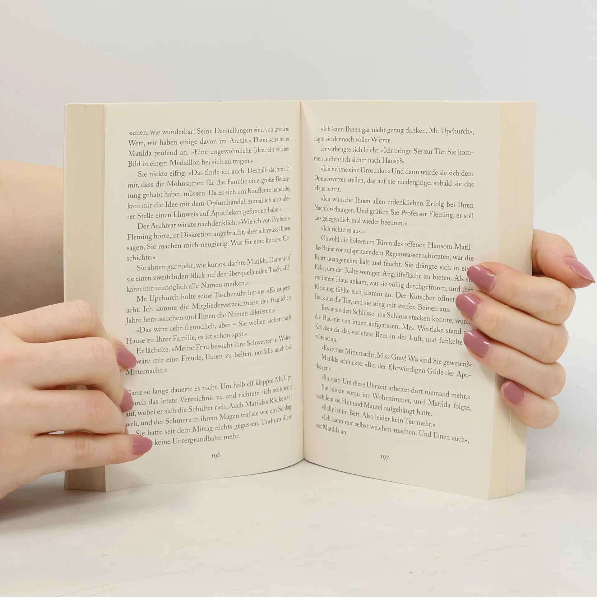 London 1900: Matilda Gray ist Lehrerin an einer Mädchenschule und führt das Leben einer unabhängigen Frau. Als ihre Lieblingsschülerin Laura nicht mehr zum Unterricht erscheint, ahnt Matilda, dass diese in Gefahr ist. Zu plötzlich ist ihr Verschwinden, zu fadenscheinig sind die Begründungen des Vormunds. Eine verschlüsselte Botschaft, die ihr Laura auf einer Postkarte schickt, bringt Matilda auf die Spur des Mädchens. Ihre Suche führt sie zu dem Historiker Stephen Fleming und mit ihm zu einem jahrhundertealten Geheimnis, tief hinein in die verborgensten Winkel der Stadt.