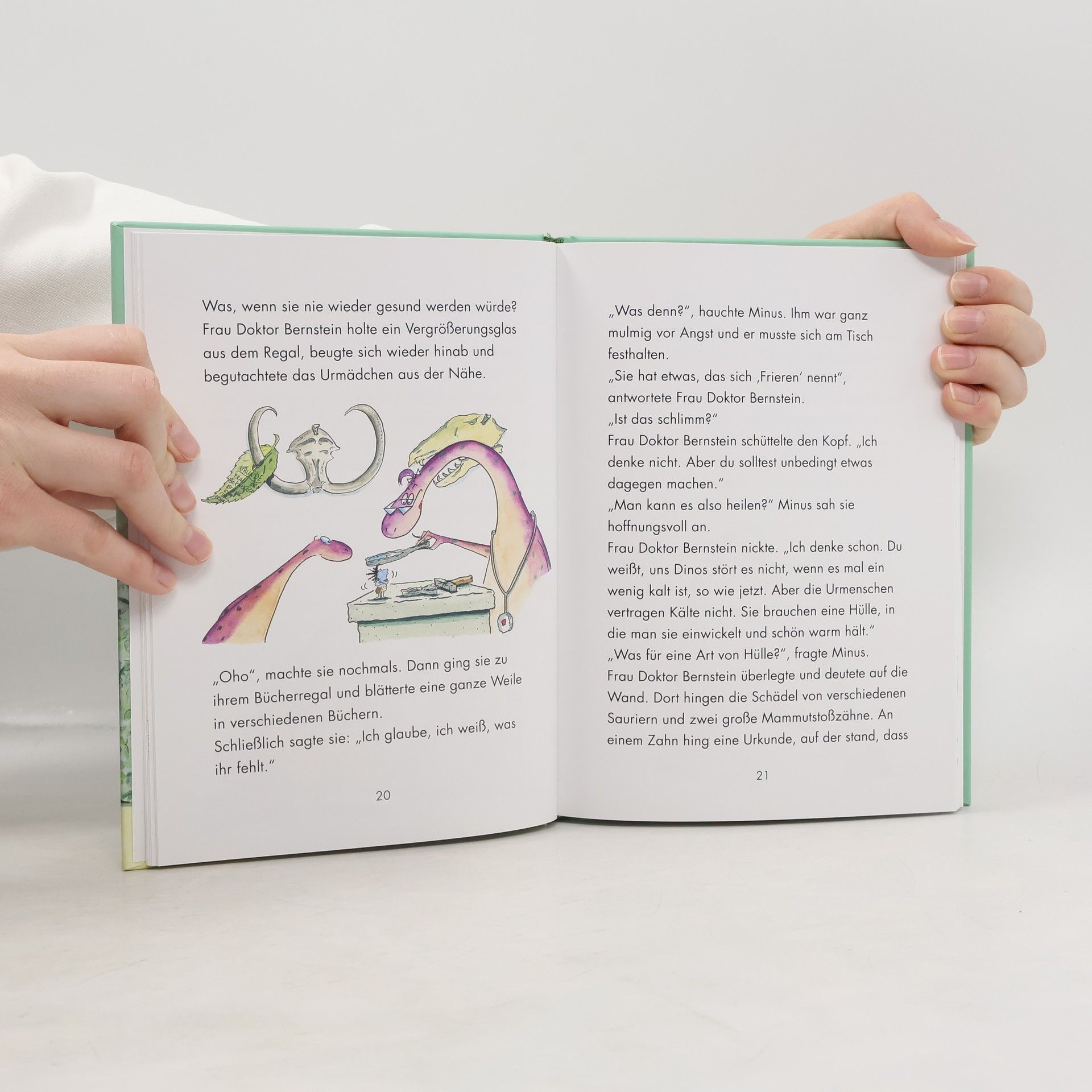 Dinosaurier Minus Drei hat Streit mit seinen Eltern. Papa schimpft, weil Minus die alte Badewanne immer noch nicht weggeräumt hat. Und Mama regt sich fürchterlich auf, als Minus ein winziges Stückchen von ihrem Mammutfell-Schal abschneidet. Dabei wollte er doch bloß, dass sein Haustier Lucy etwas Warmes zum Anziehen hat. Kurzerhand beschließt Minus, auszuziehen. Am besten in ein Baumhaus im Dschungel. Aber es ist gar nicht so leicht, sich im Urwald allein zurechtzufinden – und außerdem zittert die arme Lucy immer mehr. Bald muss Minus feststellen, dass sie sich hoffnungslos verirrt haben ... Ausstattung: Mit fbg. Illustrationen