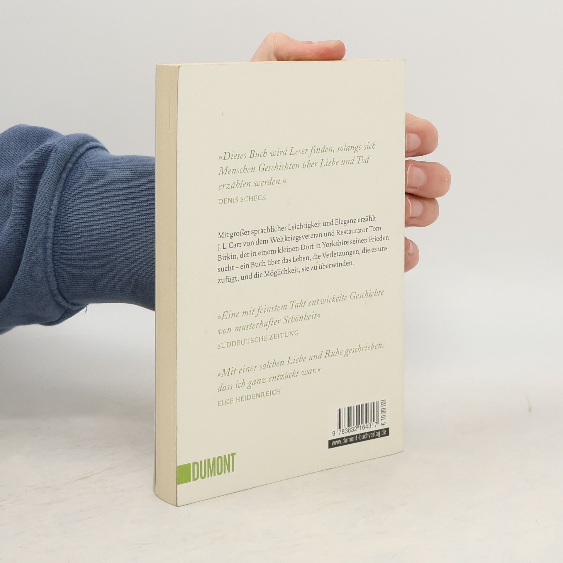 Sommer 1920 im nordenglischen Oxgodby: Als auf dem Bahnhof ein Londoner aus dem Zug steigt, weiß gleich das ganze Dorf Bescheid: Er ist der Restaurator, der das mittelalterliche Wandgemälde in der örtlichen Kirche freilegen soll. Doch was steckt hinter der Fassade des stotternden und unter chronischen Gesichtszuckungen leidenden Mannes? Tom Birkin hat im Ersten Weltkrieg gekämpft, als traumatisierter Veteran wurde er von seiner Frau verlassen. Er hofft, in der Ruhe und Einfachheit Yorkshires zu gesunden. Und tatsächlich: Je näher er dem Meisterwerk hinter der Kirchendecke kommt, desto näher kommt er auch sich selbst. Und seinen Mitmenschen. Langsam gelingt es ihm, sich der Welt um sich herum zu öffnen, vielleicht sogar der Liebe. Der Monat auf dem Land ist ein Monat der Heilung. Was Birkin hier erlebt, wird er sein Leben lang mit sich tragen… J. L. Carr erzählt von einem Mann, der überlebt, und von der Rettung, die in uns wie den anderen liegt. Dieser moderne Klassiker der englischen Literatur ist in seiner sprachlichen Leichtigkeit und Eleganz eine echte Wiederentdeckung. Der Titel enthält zusätzlich ein 16-seitige Leseprobe aus „Wie die Steeple Sinderby Wanderers den Pokal holten“.