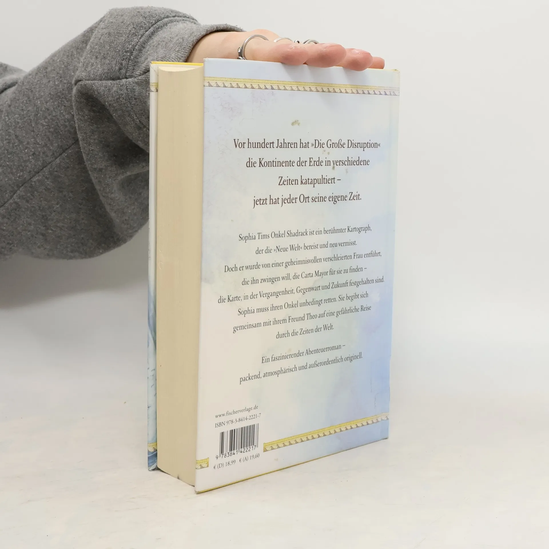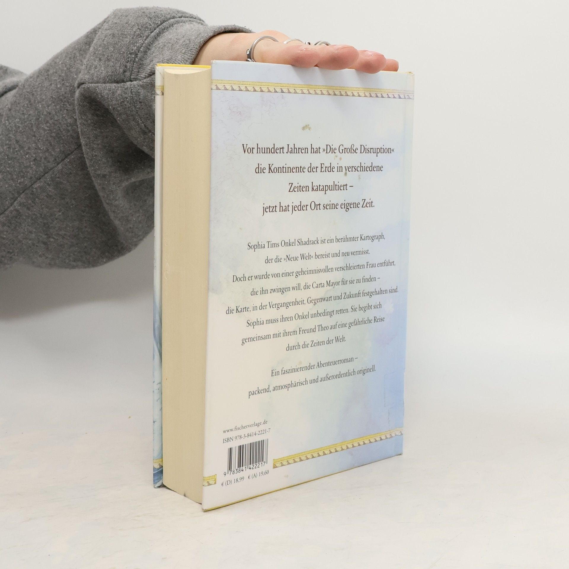 Wenn jeder Ort seine eigene Zeit hat – dann ist das nächste große Abenteuer nie weit … „Weltenriss – Die Karten der verlorenen Zeit“ – ein New-York-Times-Bestseller für alle Leser von Philip Pullman und Cornelia Funke Vor hundert Jahren hat „Die Große Disruption“ die Kontinente der Erde in verschiedene Zeiten katapultiert – jetzt hat jeder Ort seine eigene Zeit. Sophia Tims Onkel Shadrack ist ein berühmter Kartograph, der diese „Neue Welt" bereist und neu vermisst. Doch er wurde von einer geheimnisvollen verschleierten Frau entführt, die ihn zwingen will, die Carta Major für sie zu finden, die Karte in der Vergangenheit, Gegenwart und Zukunft festgehalten sind. Sophia muss ihren Onkel unbedingt retten. Sie begibt sich gemeinsam mit ihrem Freund Theo auf eine gefährliche Reise, durch die Zeiten der Welt. Ein faszinierender Abenteuerroman – packend, atmosphärisch und äußerst originell