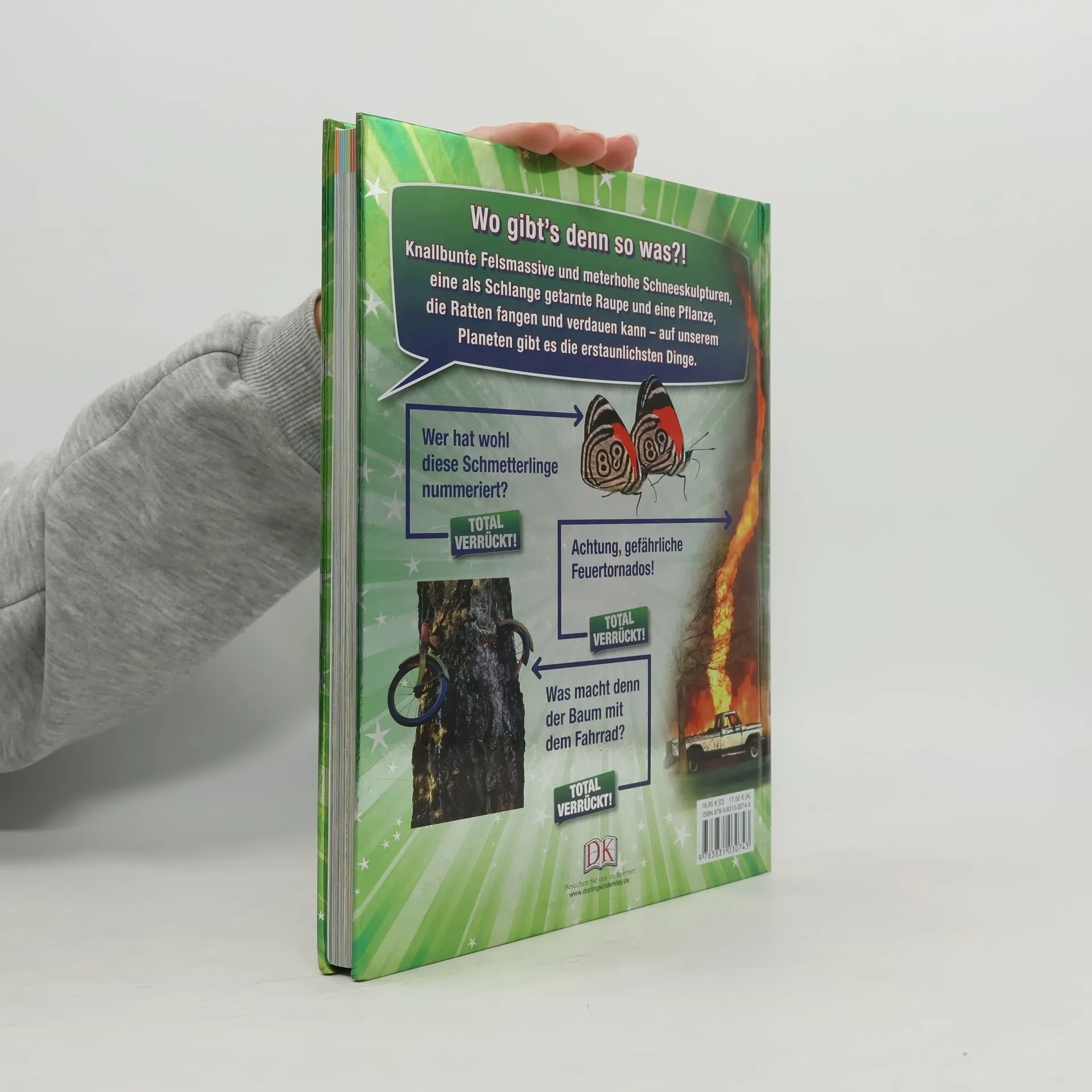 Für Kinder, die es kaum glauben können – aber alles wissen wollen! Dieses Buch steckt voller Dinge, die tatsächlich kaum zu glauben sind: Warum wird in einer spanischen Kleinstadt jedes Jahr im August eine Stunde lang mit Tomaten geworfen? Wie kann eine auf den Philippinen vorkommende Pflanze Ratten fangen? „Total verrückt“ fasst all das, was man nicht fassen kann, in klare Worte und beeindruckende Bilder. Fünf große Kapitel beschäftigen sich mit den Themengebieten Erde, Mensch, Pflanzen, Tiere und Kräfte der Natur. Jedes Phänomen wird auf einer Doppelseite mit einem beeindruckenden, großformatigen Foto thematisiert. Kurze Texte erläutern auf kindgerechte Weise, was man darauf sieht. Gut-zu-wissen-Boxen bieten zusätzliche Hintergrundinfos sowie zahlreiche Vergleiche und Rekorde, die durch anschauliche und einprägsame Grafiken illustriert werden. Mit diesem Buch sieht man die Welt mit neuen Augen – Spaß und Angeberwissen inklusive! Dieses Buch ist bei Antolin. de verfügbar.