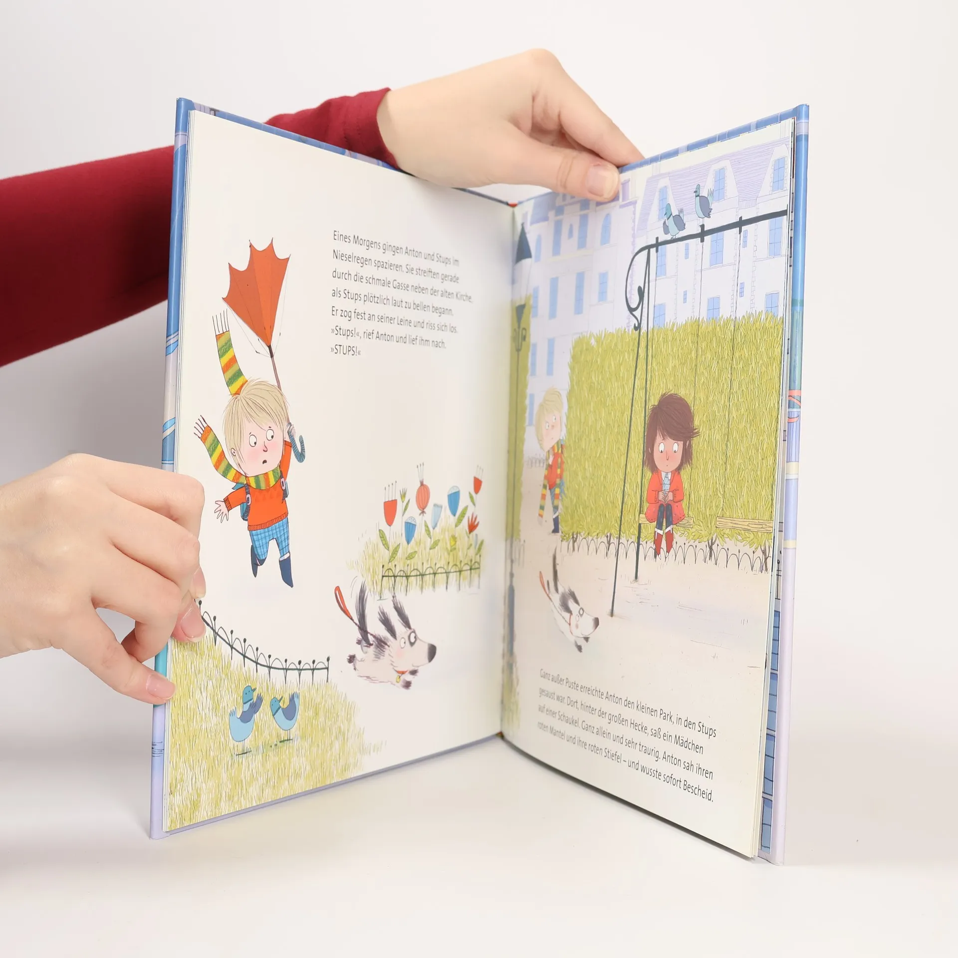 Eines Tages entdeckt Anton auf der Straße einen herrenlosen Hund. Stups steht auf seinem Halsband, weiter nichts. Anton und Stups sind sofort dicke Freunde und das erste Mal, seit er mit seiner Familie in die große Stadt gezogen ist, fühlt sich Anton nicht mehr allein. Aber was, wenn Stups doch jemandem gehört? Jemandem, der seinen kleinen Hund jetzt überall sucht? Eine herzerwärmende Geschichte vom Freunde suchen und finden.