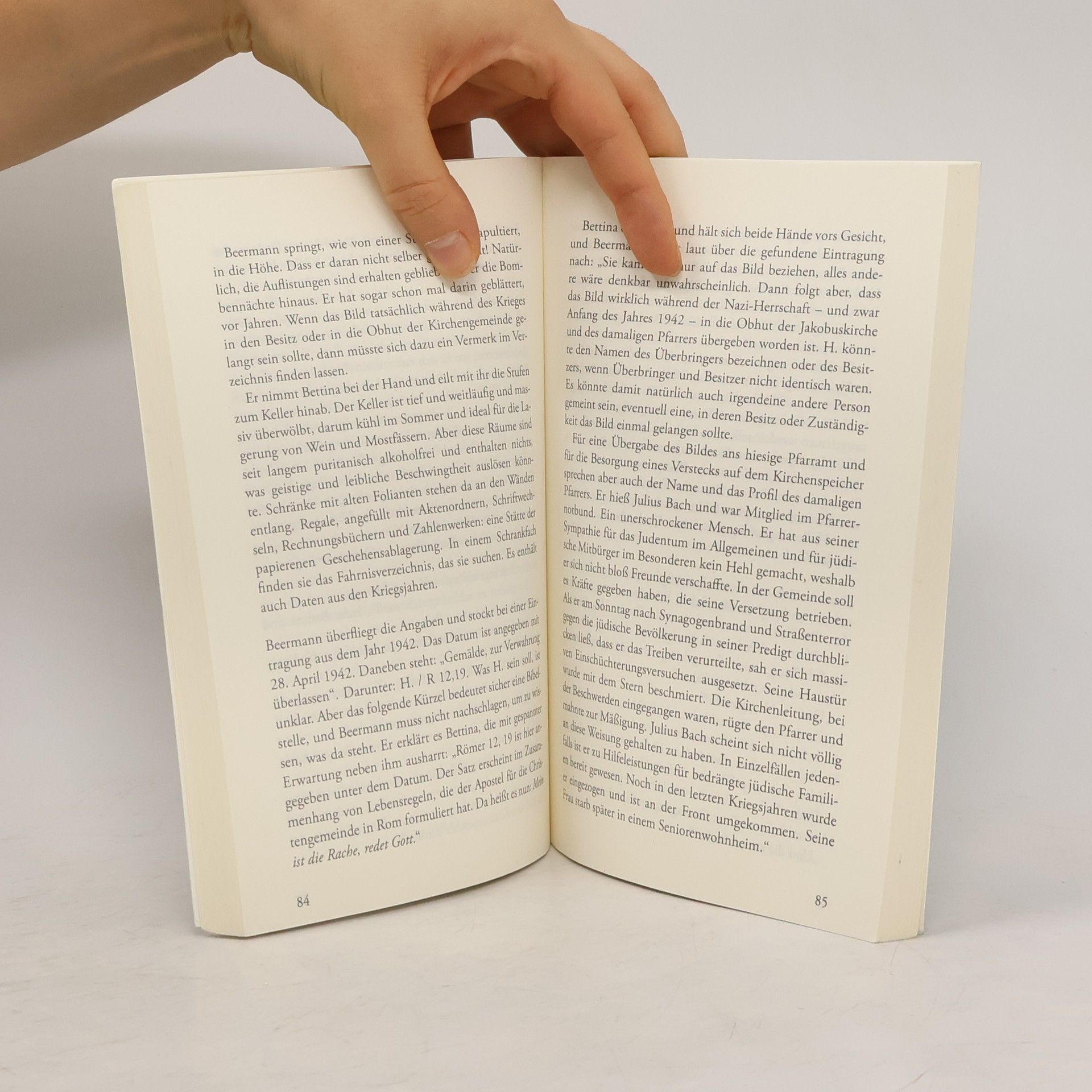 Was hat es zu bedeuten, dieses unscheinbare, aber auch rätselhafte Bild, das zufällig auf dem Speicher einer Großstadtkirche gefunden wurde? Pfarrer Beermann ahnt, dass es von einem Geheimnis umgeben ist und dass mit seiner Entdeckung eine Menge Ärger auf ihn zukommen könnte. Ob er will oder nicht, er gerät spätestens in dem Augenblick, als ein ermordeter Jude gleich neben der Kirche aufgefunden wird, in die Mühlen polizeilicher Ermittlungen. Und taucht ein ins Dickicht einer dunklen geschichtlichen Vergangenheit. Unverhofft wird es zu seiner Aufgabe, Licht in dieses Dunkel zu bringen.
