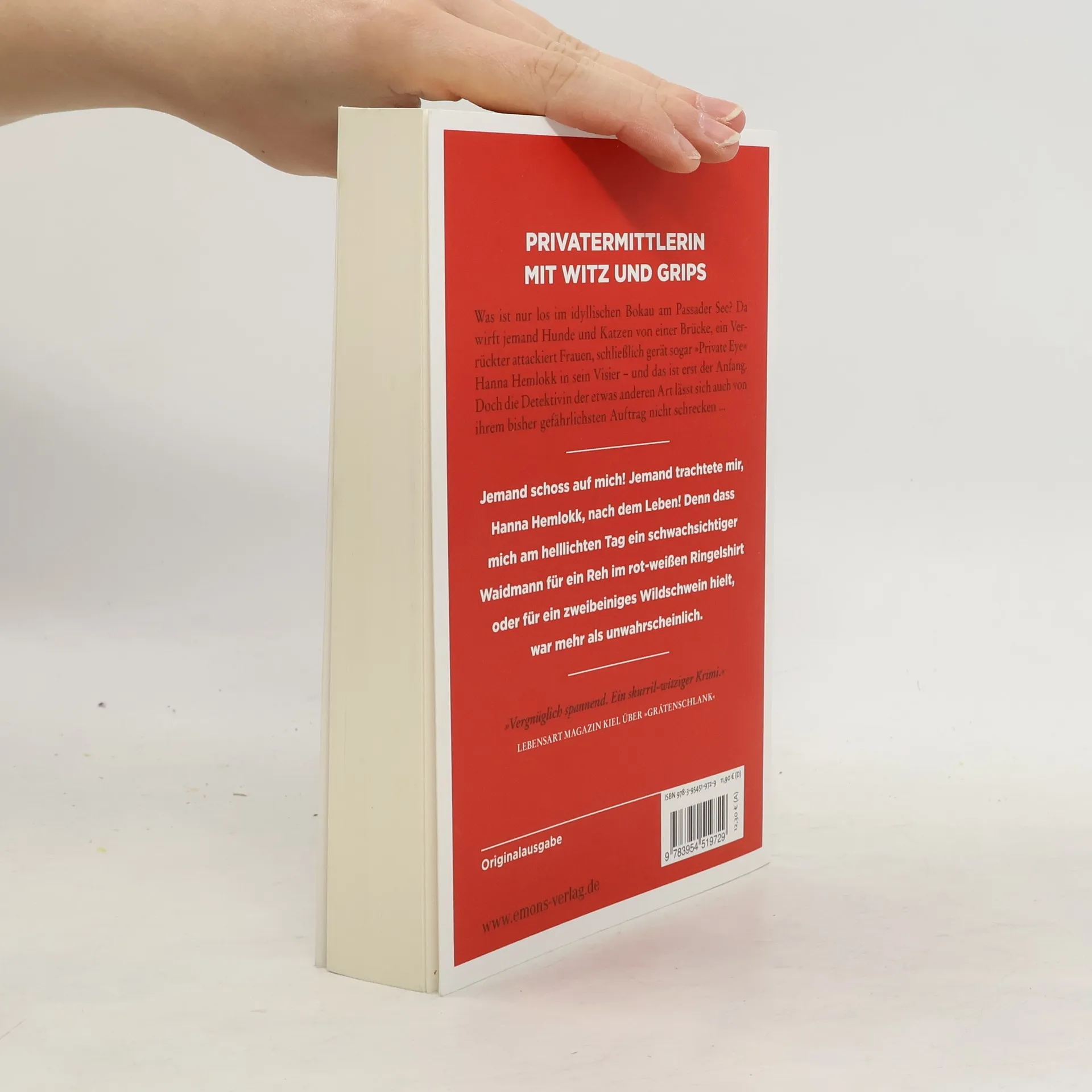 Was ist nur los im idyllischen Bokau am Passader See? Da wirft jemand Hunde und Katzen von einer Brücke, ein Verrückter attackiert Frauen, schließlich gerät sogar »Private Eye« Hanna Hemlokk in sein Visier – und das ist erst der Anfang. Doch die Detektivin der etwas anderen Art lässt sich auch von ihrem bisher gefährlichsten Auftrag nicht schrecken . . .