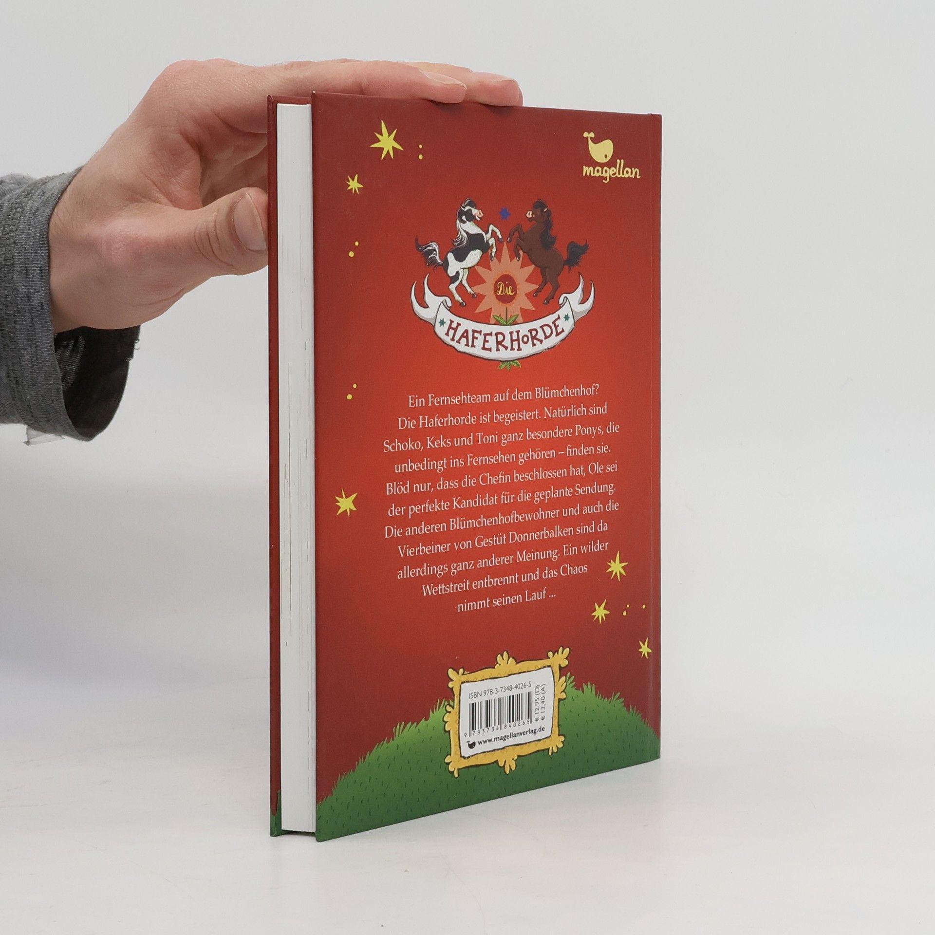 Ein Fernsehteam auf dem Blümchenhof? Die Haferhorde ist begeistert. Natürlich sind Schoko, Keks und Tony ganz besondere Ponys, die unbedingt ins Fernsehen gehören. Blöd nur, dass die Chefin beschlossen hat, Ole sei der perfekte Kandidat für die geplante Sendung. Die anderen Blümchenhofbewohner, und auch die Vierbeiner von Gestüt Donnerbalken, sind da allerdings ganz anderer Meinung. Ein wilder Wettstreit entbrennt und das Chaos nimmt seinen Lauf ...
