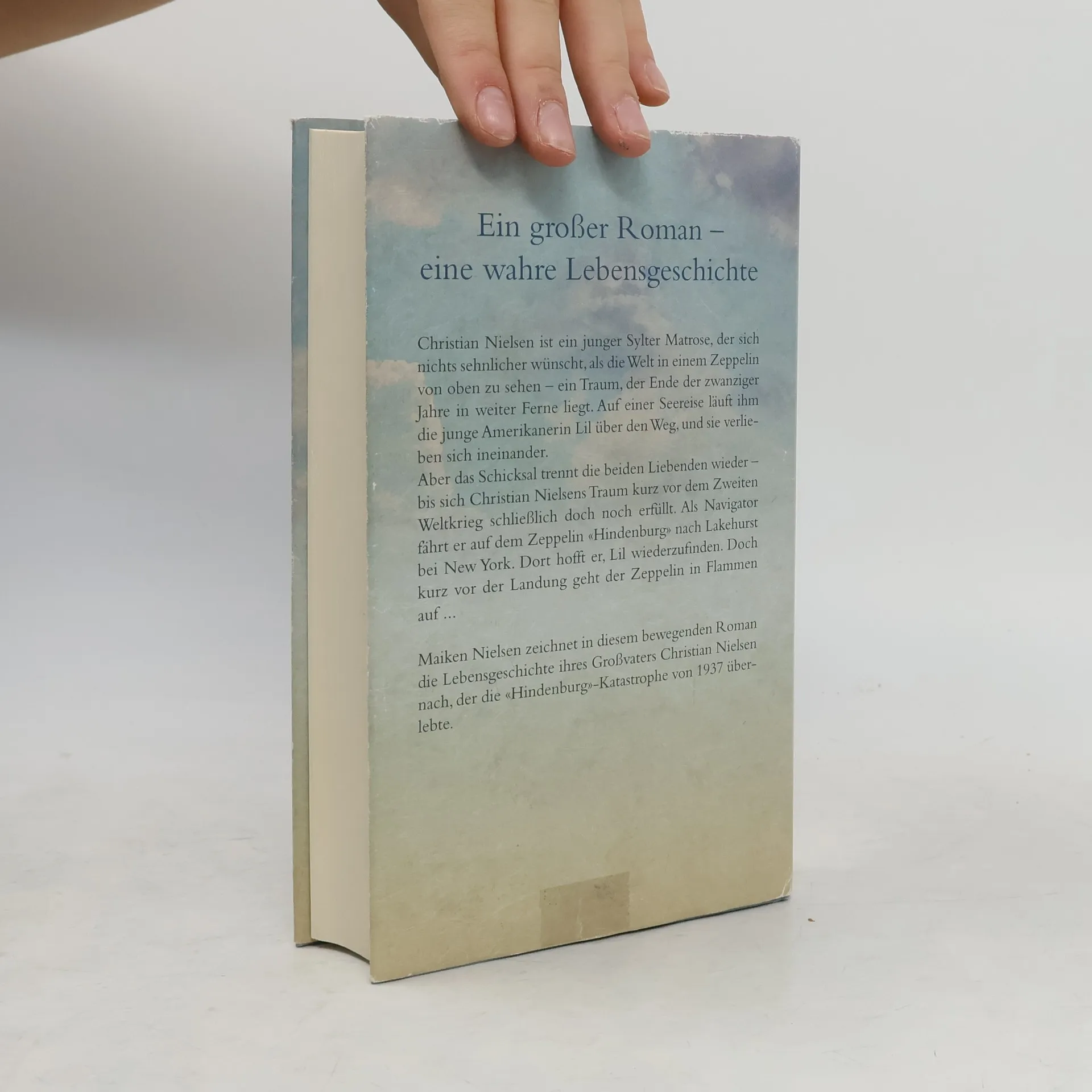 Ein Roman wie eine Weltreise durch die Luft: kühn, bunt, schwerelos! Zwei Menschen an verschiedenen Enden der Welt – zwei ungeheure Träume: Seit der Sylter Christian Nielsen 1914 einen Zeppelin gesehen hat, wünscht er sich nichts sehnlicher, als selbst einmal zu fliegen. Doch dieser Traum scheint unerreichbar. Immerhin kann er als Matrose anheuern. Und Lil Kimming will unbedingt Journalistin werden. Als sie die New Yorker Zeitungsredaktionen abklappert, merkt sie: Nicht einfach für eine Frau in den 20er-Jahren. Auf der Straße stolpert sie und wird gerade noch von einem jungen Matrosen aufgefangen – ein Moment, der ihr Leben ändert. Auf ihren Wegen begegnen Lil und Christian einander wieder, verlieben und verlieren sich. Bis zu jenem schicksalshaften Tag, an dem der Zeppelin «Hindenburg» in Flammen aufgeht … Maiken Nielsen erweckt die legendäre Ära der Luftschiffe zum Leben – anhand der Lebensgeschichte ihres eigenen Großvaters.