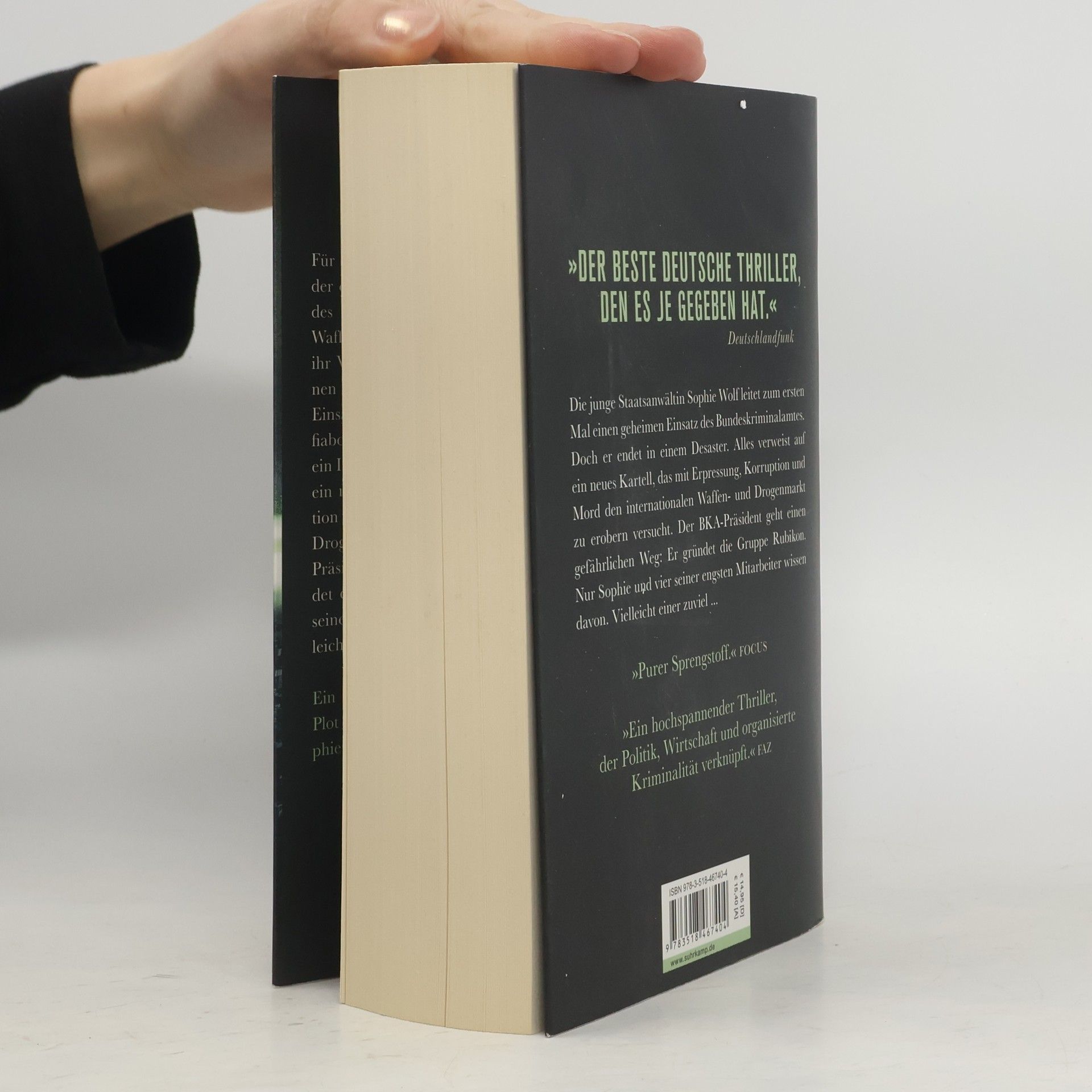 Der scheinbar aussichtslose Kampf gegen ein machtgieriges Kartell – perfekt choreographiert und packend bis zum Schluss. Ein explosiver Thriller mit elegant verwobenem Plot und voller Insiderwissen, der bleibenden Eindruck hinterlässt. Für die junge Staatsanwältin Sophie Wolf ist es der erste richtige Fall: Sie soll einen Spezialeinsatz des Bundeskriminalamts bei einem illegalen Waffengeschäft leiten. Dass der BKA-Präsident ihr Vater ist, zu dem sie seit ihrer Kindheit keinen Kontakt hatte, macht die Sache nicht unbedingt leichter. Die Aktion endet in einem Desaster: Zwei hohe Mafiabosse werden liquidiert, ein Ermittler stirbt bei der Explosion eines Waffencontainers, ein Informant wird auf dem Flughafen erschossen. Alles verweist auf ein neues Kartell, das mit Erpressung, Korruption und Mord den internationalen Waffen- und Drogenmarkt zu erobern versucht. Der BKA-Präsident geht einen gefährlichen Weg: Er gründet die Gruppe Rubikon. Nur Sophie und vier seiner engsten Mitarbeiter wissen davon. Vielleicht einer zu viel ...