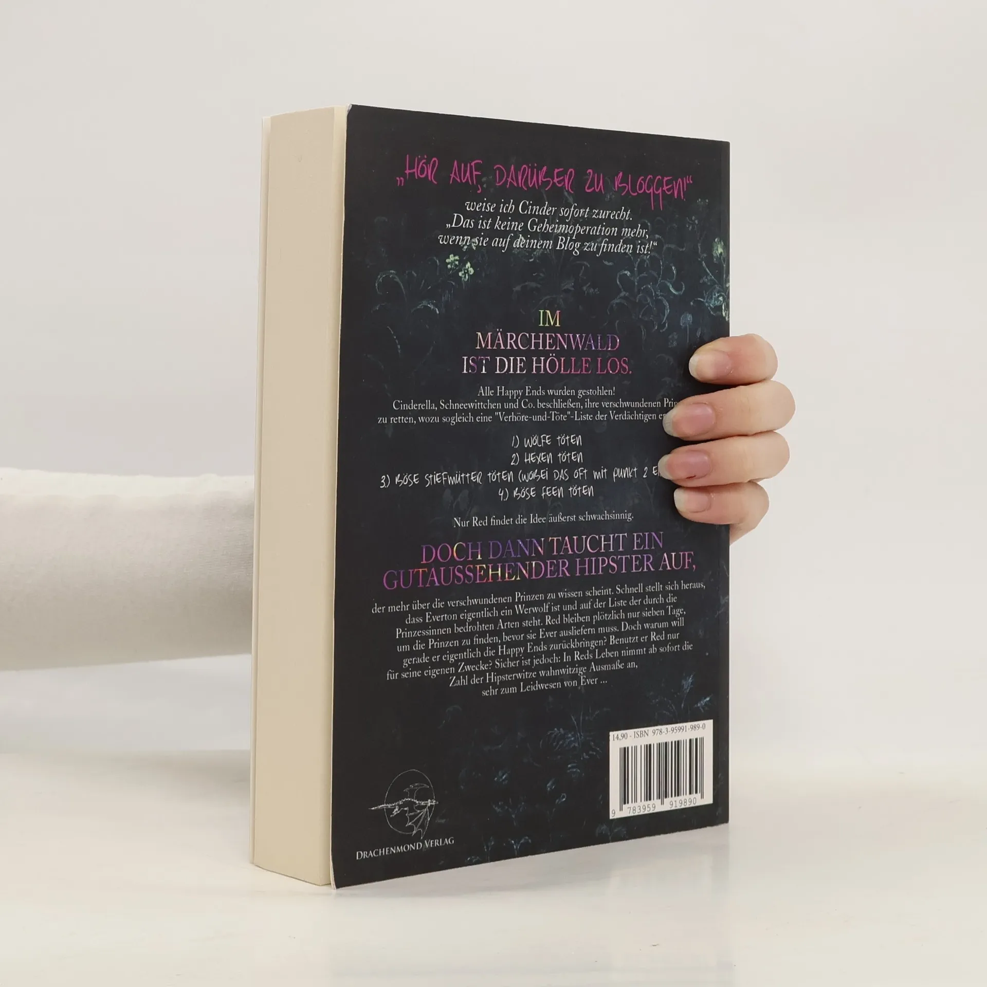Im Märchenwald ist die Hölle los. Alle Happy Ends wurden gestohlen! Cinderella, Schneewittchen und Co. beschließen, ihre verschwundenen Prinzen zu retten, wozu sogleich eine “Verhöre-und-Töte”-Liste der Verdächtigen erstellt wird: 1. Wölfe töten 2. Hexen töten 3. böse Stiefmütter töten (wobei das oft mit Punkt 2 einhergeht) 4. böse Feen töten Nur Red findet die Idee äußerst schwachsinnig. Doch dann taucht ein gutaussehender Hipster auf, der mehr über die verschwundenen Prinzen zu wissen scheint. Schnell stellt sich heraus, dass Everton eigentlich ein Werwolf ist und auf der Liste der durch die Prinzessinnen bedrohten Arten steht. Red bleiben plötzlich nur sieben Tage, um die Prinzen zu finden, bevor sie Ever ausliefern muss. Doch warum will gerade er eigentlich die Happy Ends zurückbringen? Benutzt er Red nur für seine eigenen Zwecke? Sicher ist jedoch: In Reds Leben nimmt ab sofort die Zahl der Hipsterwitze wahnwitzige Ausmaße an, sehr zum Leidwesen von Ever …