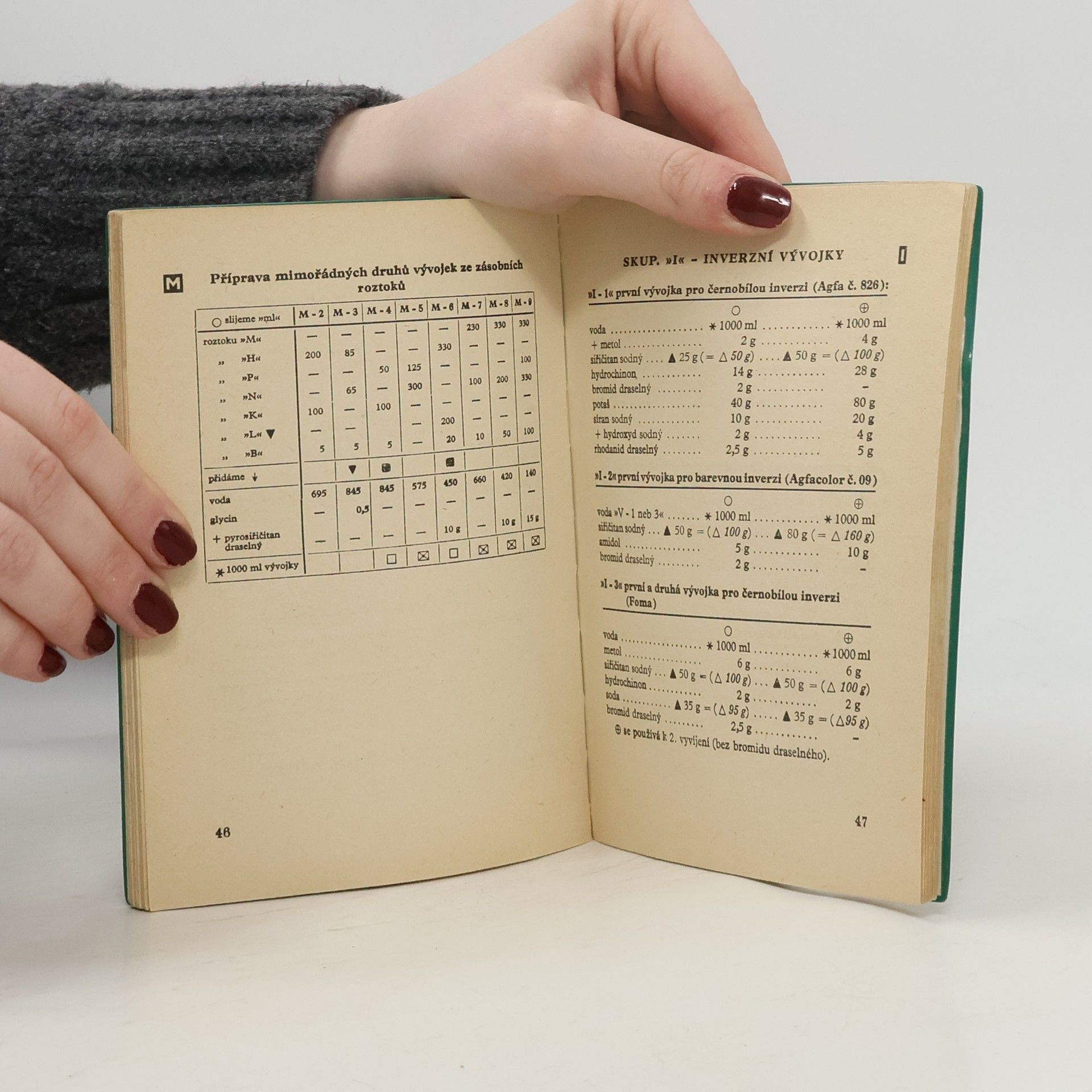 Souhrn receptů vhodných pro obvyklou praxi a použitelný pro všechny černobílé i barevné materiály s popisem vlastností chemikálií a základních pracovních postupů.