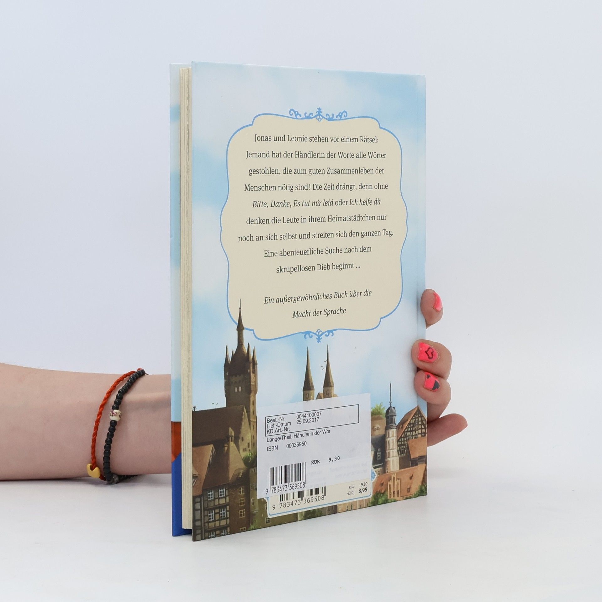 Die Händlerin der Worte ist verzweifelt: Ein dreister Dieb hat alle Wörter gestohlen, die für das gute Zusammenleben der Menschen wichtig sind. Die Leute beginnen sich zu streiten, statt einander zu helfen. Die Geschwister Jonas und Leonie begeben sich auf eine abenteuerliche Suche. Bald haben sie einen Mann im Verdacht, der mit verletzenden Wörtern handelt. Und dieser macht das Geschäft seines Lebens!