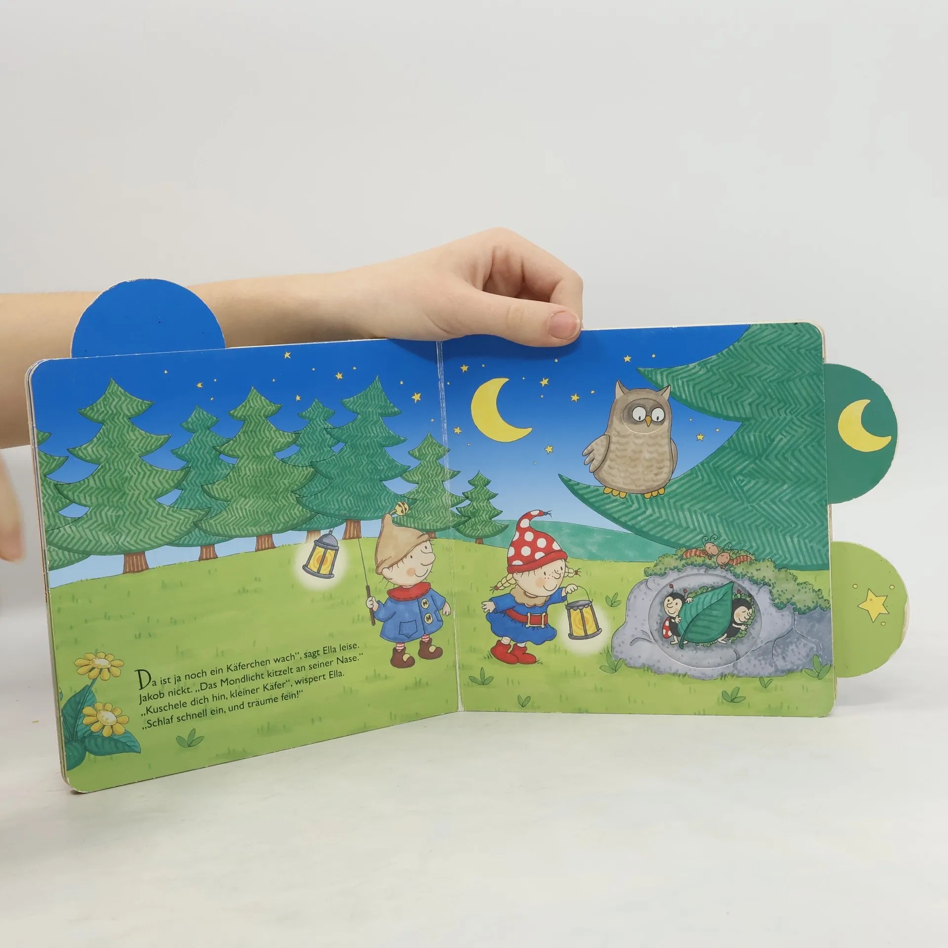 Wenn es Abend wird, gehen alle Tiere schlafen - und die Wichtel wünschen ihnen eine Gute Nacht. Aber am nächsten Morgen spielen alle zusammen wieder die lustigsten Spiele. Zwei Spielbücher mit Ausziehschiebern und lustigen Überraschungsbildern.
