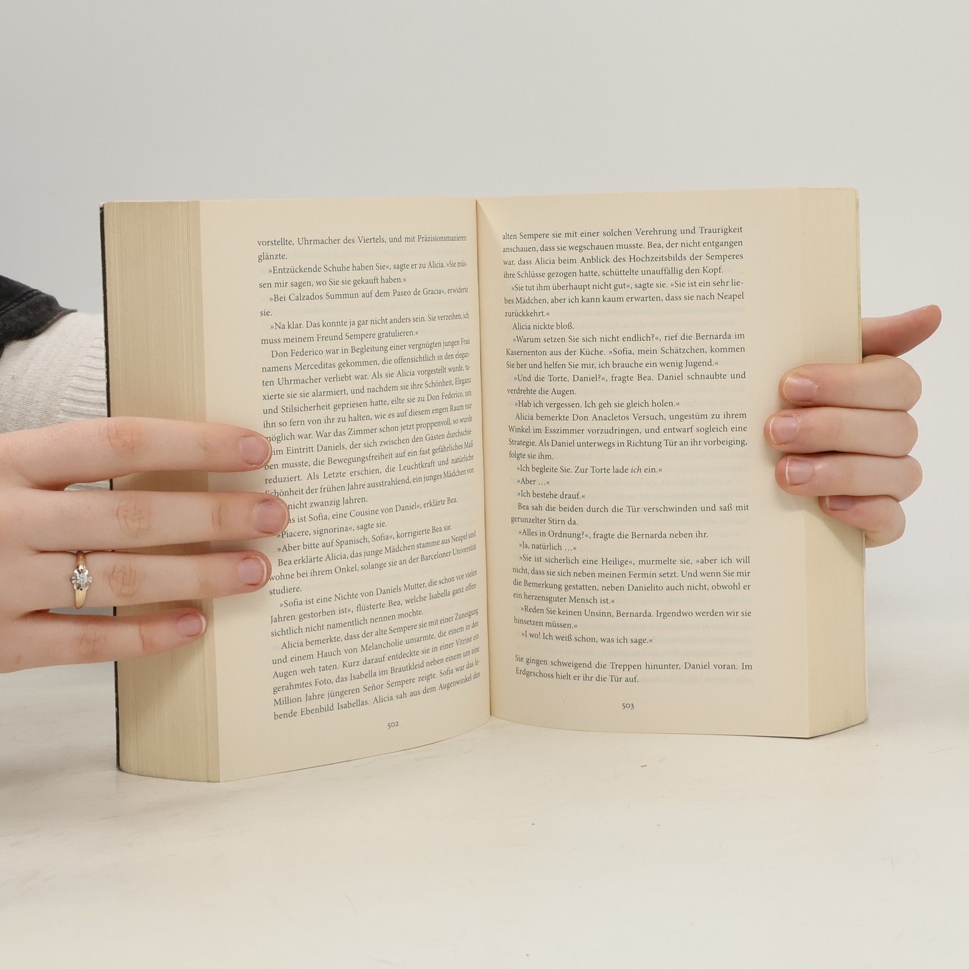 Spanien in den dunklen Tagen des Franco-Regimes: Ein Auftrag der Politischen Polizei führt die eigenwillige Alicia Gris von Madrid zurück in ihre Heimatstadt Barcelona. Unter größter Geheimhaltung soll sie das plötzliche Verschwinden des zwielichtigen Ministers Mauricio Valls aufklären, dessen dunkle Vergangenheit als Direktor des Gefängnisses von Montjuïc ihn nun einzuholen scheint. In seinem Besitz befand sich ein geheimnisvolles Buch aus der Serie Das Labyrinth der Lichter, das Alicia auf schmerzliche Weise an ihr eigenes Schicksal erinnert. Es führt sie in die Buchhandlung Sempere & Söhne, tief in Barcelonas Herz. Der Zauber dieses Ortes nimmt sie gefangen, und wie durch einen Nebel steigen Bilder ihrer Kindheit in ihr auf. Doch die Antworten, die Alicia findet, öffnen die Tür zu einer finsteren Intrige und bringen all jene in Gefahr, die Alicia am meisten liebt.