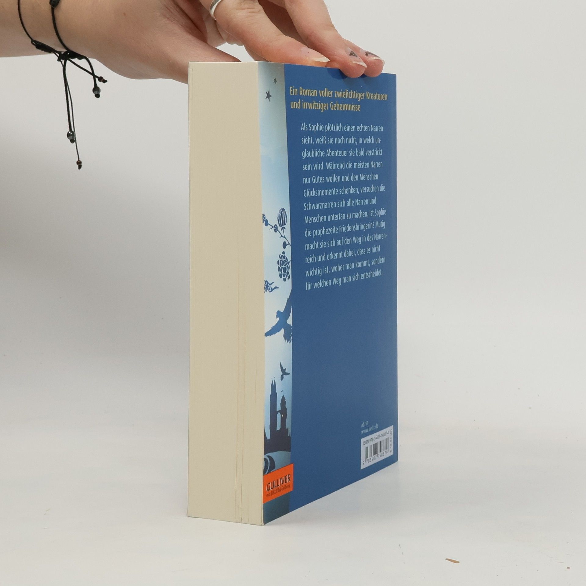 Als Sophie plötzlich einen echten Narren sieht, weiß sie noch nicht, in welch unglaubliche Abenteuer sie bald verstrickt sein wird. Während die meisten Narren nur Gutes wollen und den Menschen Glücksmomente schenken, wollen die Schwarznarren unter ihrem Anführer Kiéron sich alle Narren und Menschen untertan machen. Ist Sophie die prophezeite Friedensbringerin? Mutig macht sie sich auf den Weg in das Narrenreich und erkennt dabei, dass es nicht wichtig ist, woher man kommt, sondern für welchen Weg man sich entscheidet.