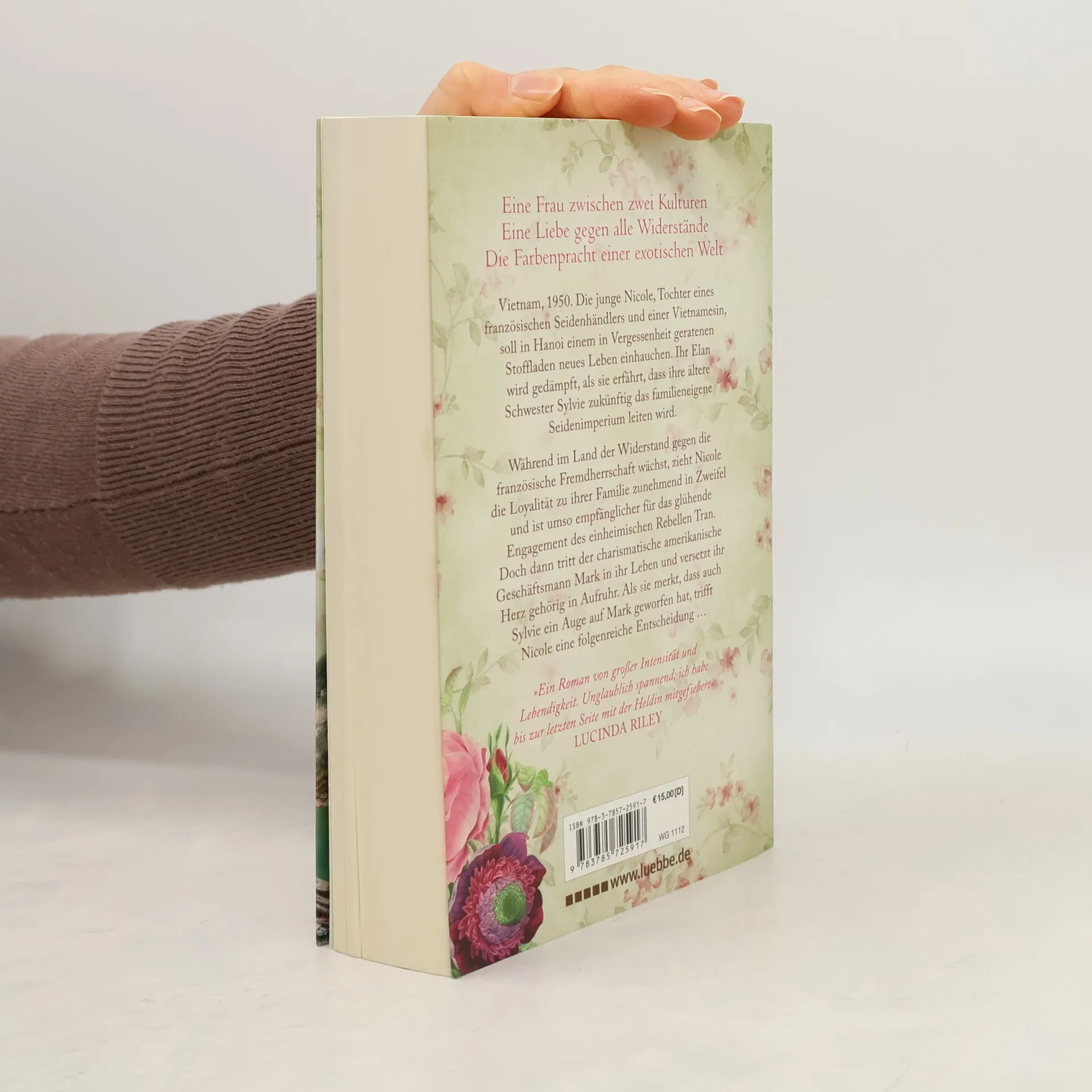 Eine Frau zwischen zwei Kulturen, eine Liebe gegen alle Widerstände Vietnam, 1950. Die junge Nicole stand von jeher im Schatten ihrer schönen Schwester Sylvie. Als Tochter eines französischen Seidenhändlers und einer Vietnamesin soll sie nun in Hanoi ein Stoffgeschäft übernehmen. Bald kommt Nicole mit Einheimischen in Berührung, die sich gegen die französische Fremdherrschaft auflehnen. Dabei entdeckt sie voller Schrecken, dass ihr Vater in dunkle Machenschaften verwickelt ist. Als sie sich in den charismatischen Mark verliebt, gerät ihre Welt abermals ins Wanken. Denn Mark scheint auch für ihre Schwester Gefühle zu hegen. Auf der Suche nach ihrem Platz in einer Welt, in der nichts ist, wie es scheint, fasst Nicole einen kühnen Plan ... Farbgewaltige Exotik des Vietnam der 1950er Jahre - Mit „Die Tochter des Seidenhändlers“ ist Dinah Jefferies eine mitreißende Geschichte um die Selbstfindung einer Frau, die Rivalität unter Schwestern und eine unmöglich scheinende Liebe gelungen.