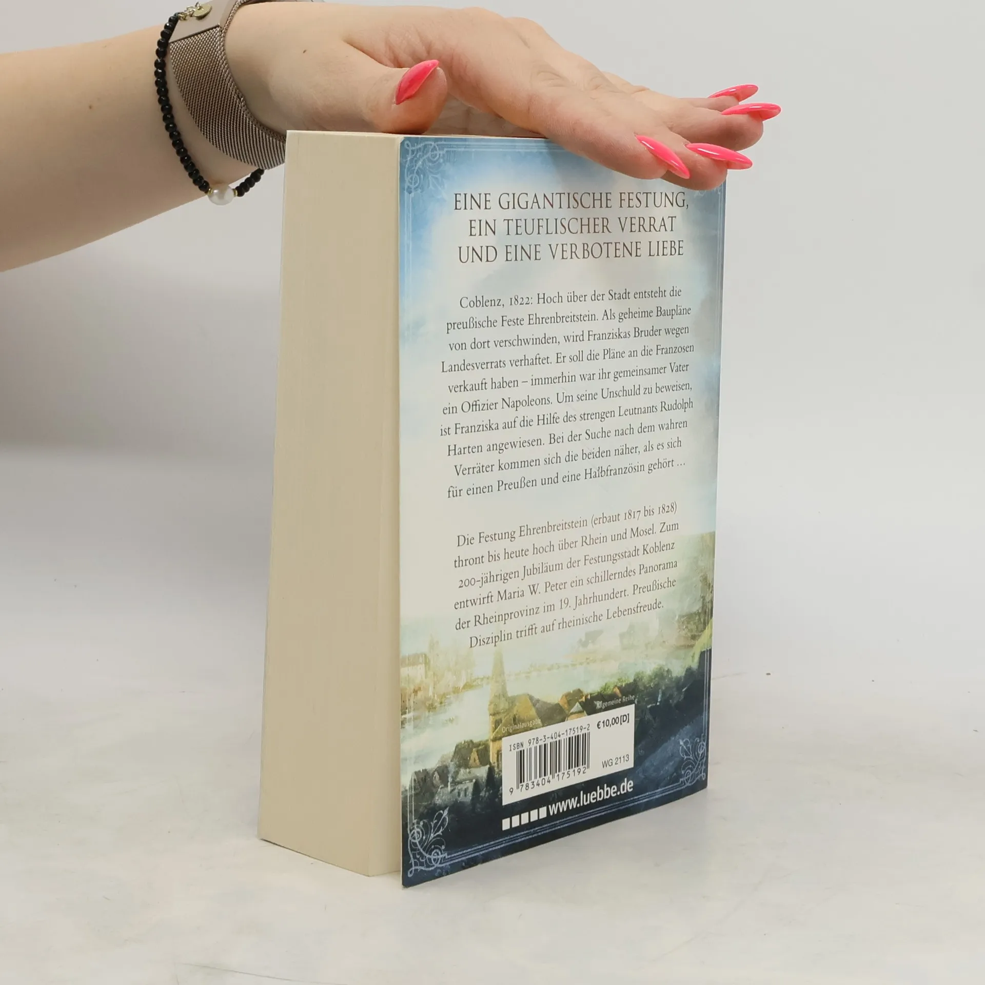 Eine gigantische Festung, ein teuflischer Verrat und eine verbotene Liebe Coblenz, 1822: Hoch über der Stadt entsteht die preußische Feste Ehrenbreitstein. Als geheime Baupläne von dort verschwinden, wird Franziskas Bruder wegen Landesverrats verhaftet. Er soll die Pläne an die Franzosen verkauft haben - immerhin war ihr gemeinsamer Vater ein Offizier Napoleons. Um seine Unschuld zu beweisen, ist Franziska auf die Hilfe des strengen Leutnants Rudolph Harten angewiesen. Bei der Suche nach dem wahren Verräter kommen sich die beiden näher, als es sich für einen Preußen und eine Halbfranzösin gehört ... Die Festung Ehrenbreitstein (erbaut 1817 bis 1828) thront bis heute hoch über Rhein und Mosel. Zum 200-jährigen Jubiläum der Festungsstadt Koblenz entwirft Maria W. Peter ein schillerndes Panorama der Rheinprovinz im 19. Jahrhundert. Preußische Disziplin trifft auf rheinische Lebensfreude.