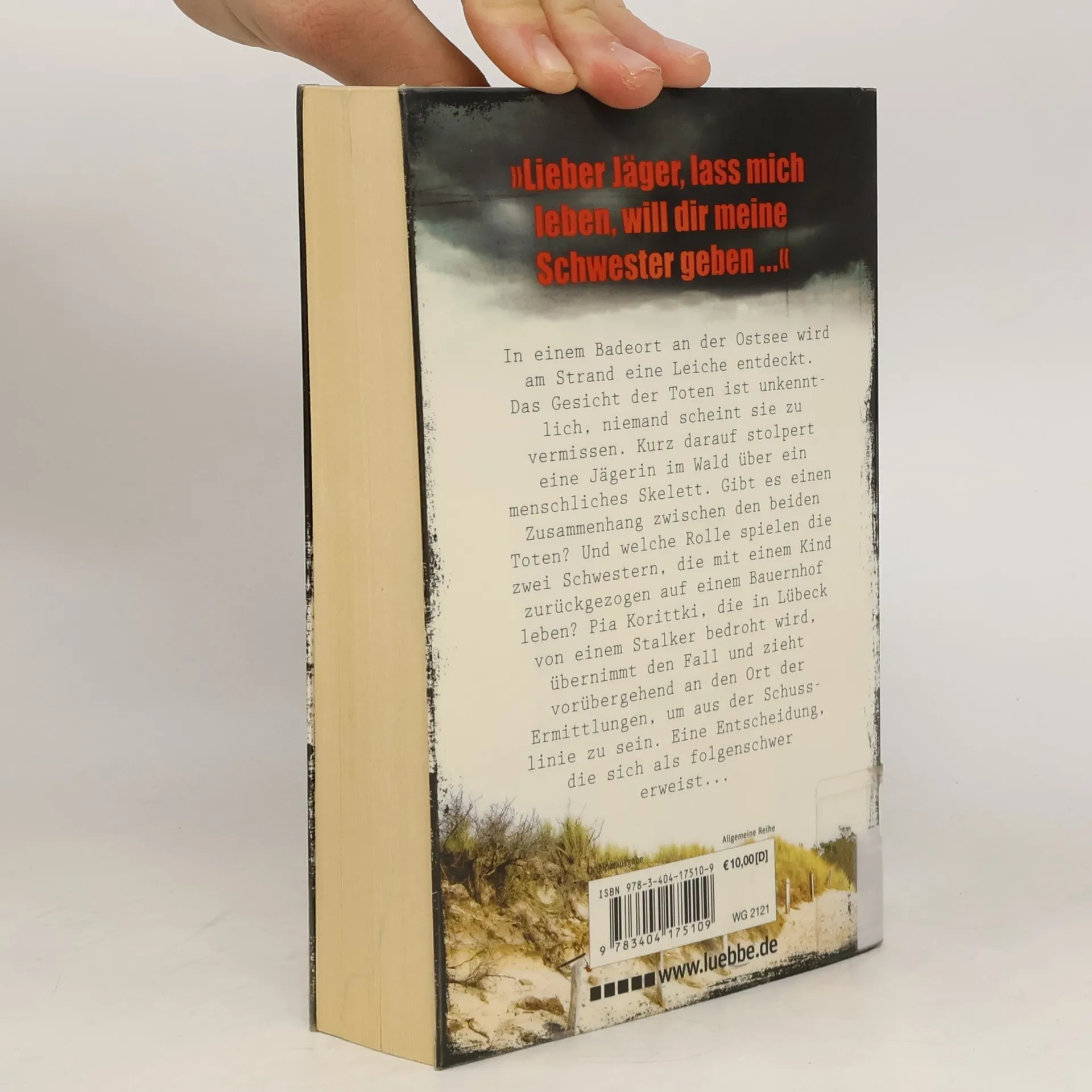 „Lieber Jäger, lass mich leben, will dir meine Schwester geben...“ In einem Badeort an der Ostsee entdeckt ein Hotelbesitzer am Strand eine Leiche. Das Gesicht der Toten ist unkenntlich, niemand scheint sie zu vermissen. Kurz darauf stolpert eine Jägerin im Wald über ein menschliches Skelett. Gibt es einen Zusammenhang zwischen den beiden Toten? Und welche Rolle spielen die zwei Schwestern, die mit einem Kind zurückgezogen auf einem Bauernhof leben? Pia Korittki, die in Lübeck von einem Stalker bedroht wird, übernimmt den Fall und zieht vorübergehend an den Ort der Ermittlungen, um aus der „Schusslinie“ zu sein. Eine Entscheidung, die sich als folgenschwer erweist... Ein neuer Fall für Kommissarin Pia Korittki - der zwölfte Band der erfolgreichen Ostseekrimi-Reihe von Bestsellerautorin Eva Almstädt!