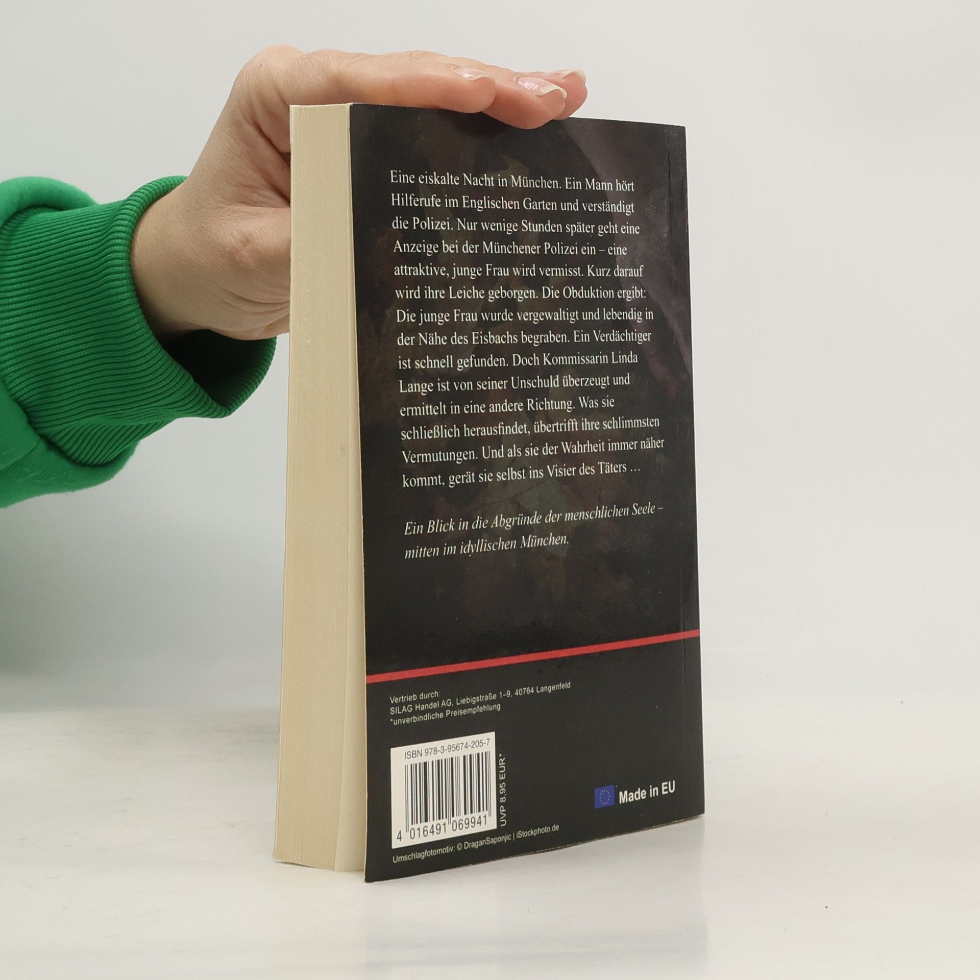 Er hatte dafür gesorgt, dass sie nicht mehr auftauchen würde. Nie mehr. Eine eiskalte Nacht in München. Ein Mann hört Hilferufe im Englischen Garten und verständigt die Polizei. Nur wenige Stunden später geht eine Anzeige bei der Münchener Polizei ein - eine attraktive, junge Frau wird vermisst. Kurz darauf wird ihre Leiche geborgen. Die Obduktion Die junge Frau wurde vergewaltigt und lebendig in der Nähe des Eisbachs begraben. Ein Verdächtiger ist schnell gefunden. Doch Kommissarin Linda Lange ist von seiner Unschuld überzeugt und ermittelt in eine andere Richtung. Was sie schließlich herausfindet, übertrifft ihre schlimmsten Vermutungen. Und als sie der Wahrheit immer näher kommt, gerät sie selbst ins Visier des Täters ... Ein Blick in die Abgründe der menschlichen Seele - mitten im idyllischen München.