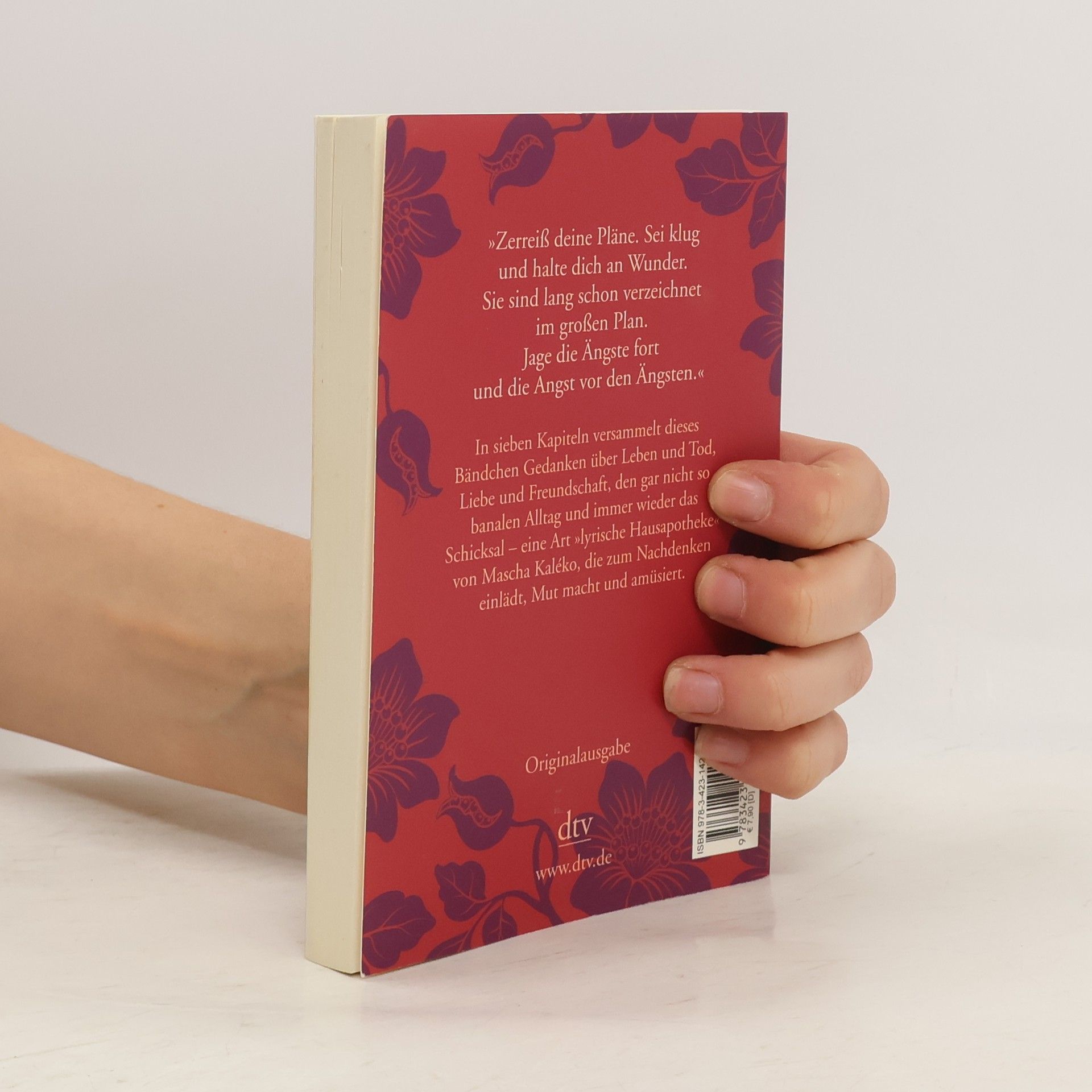 "Zerreiß deine Pläne. Sei klug und halte dich an Wunder. Sie sind lang schon verzeichnet im großen Plan. Jage die Ängste fort und die Angst vor den Ängsten." In sieben Kapiteln versammelt dieses Bändchen Gedanken über Leben und Tod, Liebe und Freundschaft, den gar nicht so banalen Alltag und immer wieder das Schicksal - eine Art "lyrische Hausapotheke" von Sascha Kaléko, die zum Nachdenken einlädt, Mut macht und amüsiert.