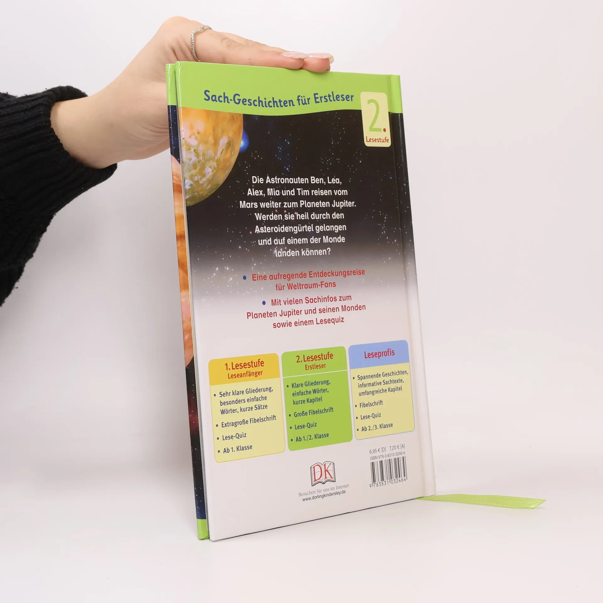 Eine Reise vom Mars zum Planeten Jupiter, durch den Asteroidengürtel und danach mit der Landesfähre die Jupiter Monde erkunden – begleitet die Astronauten Ben, Lea, Alex, Mia und Tim auf ihrer aufregenden Weltraummission. Dabei erfahrt ihr spannende Infos über die Galaxis – wusstet ihr zum Beispiel, dass es im Asteroidengürtel etwa 1,4 Millionen Gesteinsbrocken gibt? Eine aufregende Entdeckungsexpedition für alle Weltraum-Fans! Die Superleser!-Bücher kombinieren das Beste aus Sach- und erzählendem Buch: Aufregende Geschichten werden durch interessante Hintergrundinformationen ergänzt - so kommt der Spaß, aber auch der Lerneffekt nicht zu kurz! Die Bücher gibt es in drei Lesestufen: für Leseanfänger in gelb, für Erstleser in grün und für Leseprofis in blau. Am Ende jedes Bandes gibt es ein Quiz mit Fragen zum Text sowie Hinweise und Tipps für Eltern, wie sie ihr Kind beim Lesen lernen bestmöglich unterstützen können. Die Sach-Geschichten der zweiten Lesestufe sind für Kids ab Ende der ersten bis zur zweiten Schulklasse perfekt geeignet. Auf jeweils 64 Seiten fesseln abwechslungsreiche Geschichten in großer Fibelschrift und mit vielen Bildern. Dazu gibt es ein tolles Lesebändchen zum schnellen Wiederfinden - so macht Lesen üben Spaß! Dieses Buch ist bei Antolin.de verfügbar.
