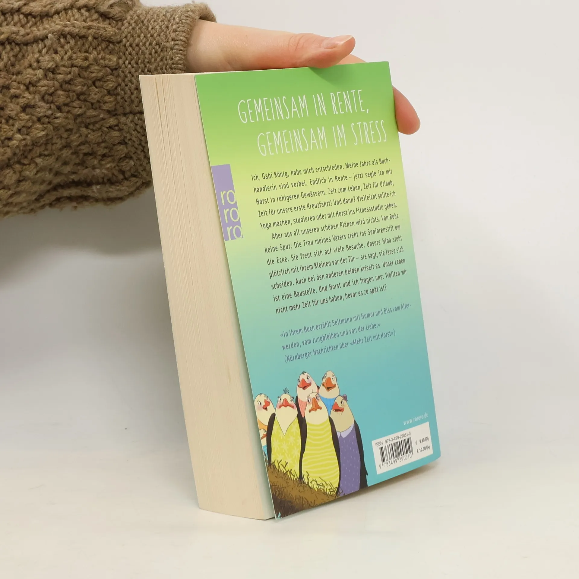 Gemeinsam in Rente, gemeinsam im Stress Ich, Gabi König, habe mich entschieden. Meine Jahre als Buchhändlerin sind vorbei. Endlich in Rente –jetzt segle ich mit Horst in ruhigeren Gewässern. Zeit zum Leben, Zeit für Urlaub, Zeit für unsere erste Kreuzfahrt! Und dann? Vielleicht sollte ich Yoga machen, studieren oder mit Horst ins Fitnessstudio gehen. Aber aus all unseren schönen Plänen wird nichts. Von Ruhe keine Spur: Die Frau meines Vaters zieht ins Seniorenstift um die Ecke. Sie freut sich auf viele Besuche. Unsere Nina steht plötzlich mit ihrem Kleinen vor der Tür - sie sagt, sie lasse sich scheiden. Auch bei den anderen beiden kriselt es. Unser Leben ist eine Baustelle. Und Horst und ich fragen uns: Wollten wir nicht mehr Zeit für uns haben, bevor es zu spät ist?