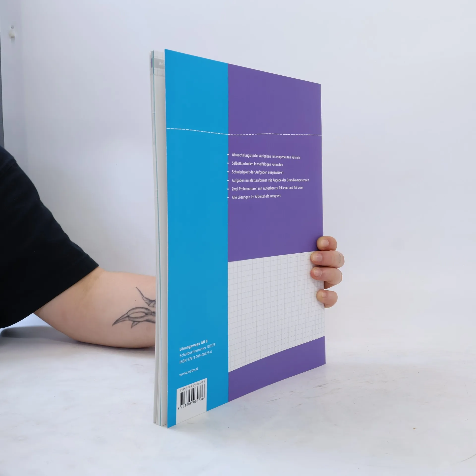 Abwechslungsreiche Aufgaben mit eingebauten Rätseln, Selbstkontrollen und in vielfältigen Formaten ergänzen das Schulbuch in allen Bereichen. Semesterchecks mit Aufgaben zu allen Kompetenzbereichen schließen die Semestermodule ab. Die Aufgaben sind in drei Schwierigkeitsstufen ausgewiesen. Aufgaben in Maturaformaten sind markiert und für die bestmögliche Vorbereitung ist auch die benötigte Grundkompetenz angegeben. Alle Lösungen sind in das Arbeitsheft integriert.