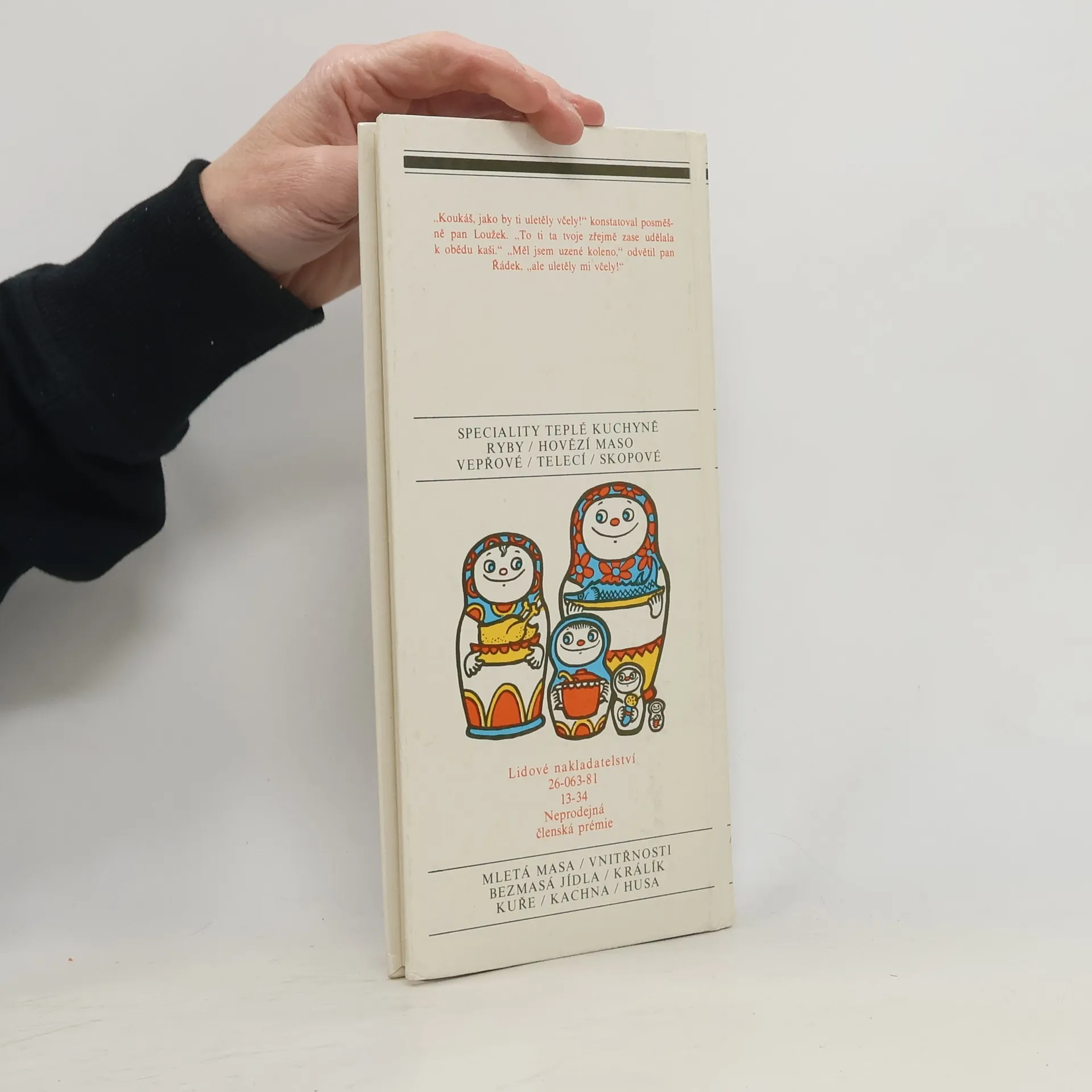 Speciality teplé kuchyně - Ryby - Hovězí maso - Vepřové - Telecí - Skopové - Mletá masa - Vnitřnosti - Bezmasá jídla - Králík - Kuře - Kachna - Husa.