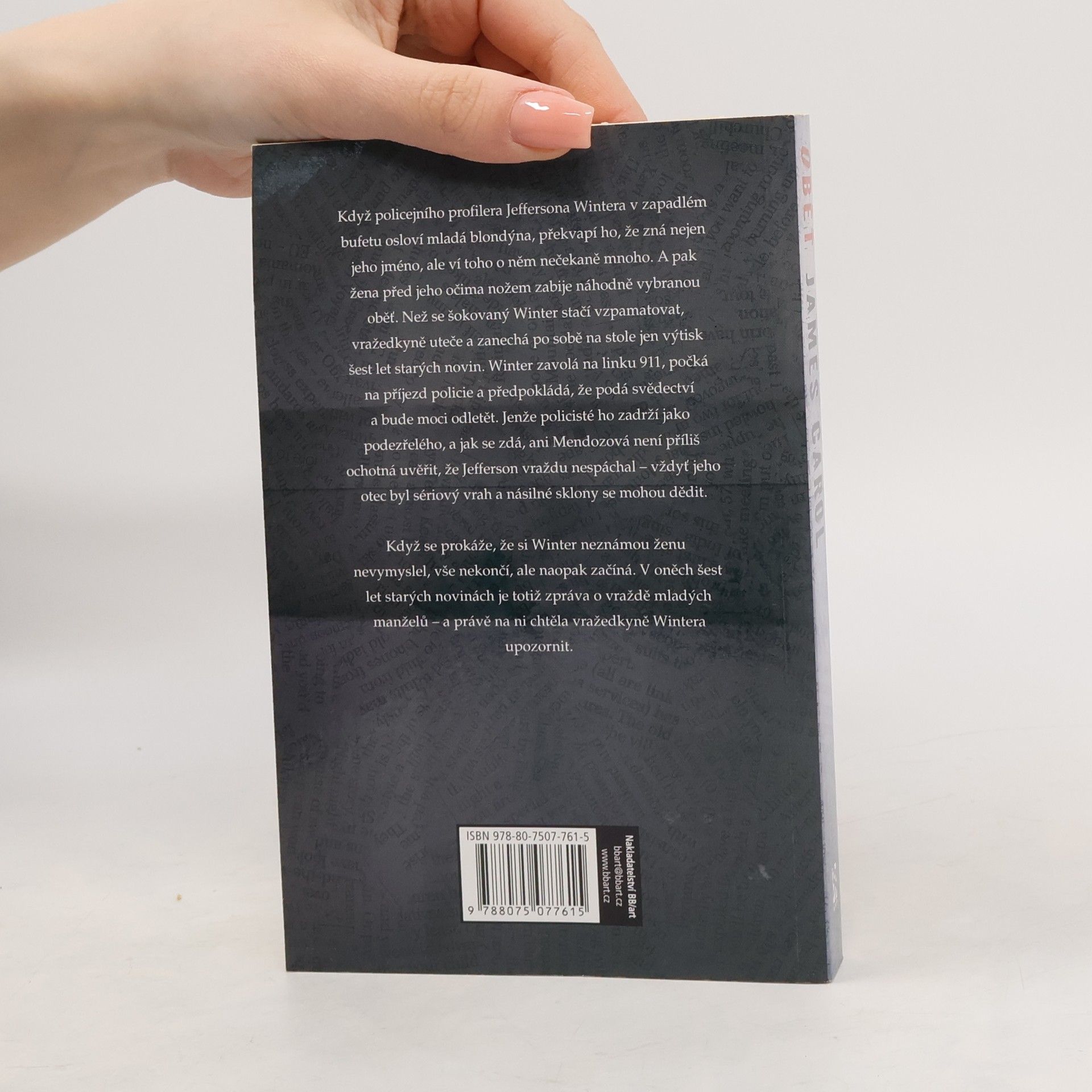 Poté co policejní profiler Jefferson Winter spolu se seržantkou Mendozovou v New Yorku odhalil a dopadl sadistického vraha mladých homosexuálů, odpočívá a připravuje se na další zakázku v Paříži.Trápí ho nespavost, a tak si několik nocí po sobě chodí posedět nad kávou do zapadlého bufetu. Když jej tam osloví mladá blondýna, překvapí ho, že zná nejen jeho jméno, ale ví toho o něm nečekaně mnoho. A pak žena před jeho očima nožem zabije náhodně vybranou oběť. Než se šokovaný Winter stačí vzpamatovat, vražedkyně uteče a zanechá po sobě na stole jen výtisk šest let starých novin. Winter zavolá na linku 911, počká na příjezd policie a předpokládá, že podá svědectví a bude moci odletět. Jenže policisté ho zadrží jako podezřelého, a jak se zdá, ani Mendozová není příliš ochotná uvěřit, že Jefferson vraždu nespáchal vždyť jeho otec byl sériový vrah a násilné sklony se mohou dědit.Když se prokáže, že si Winter neznámou ženu nevymyslel, vše nekončí, ale naopak začíná. V oněch šest let starých novinách je totiž zpráva o vraždě mladých manželů a právě na ni chtěla vražedkyně Wintera upozornit.