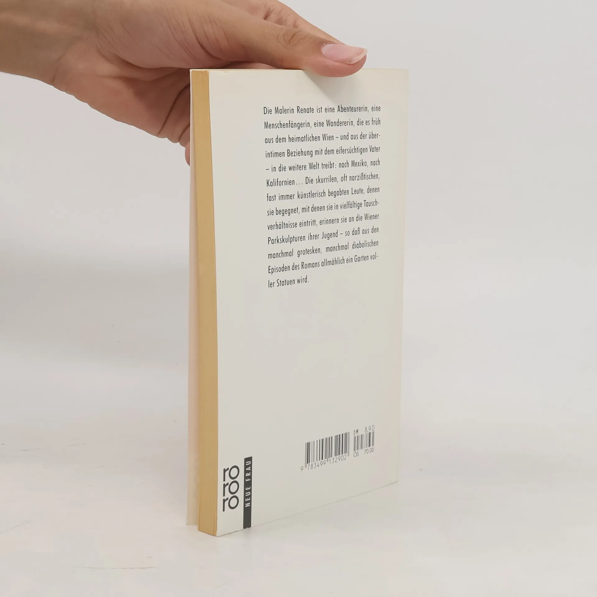 Die Malerin Renate ist eine Abenteurerin, eine Menschenfängerin, eine Wandererin, die es früh aus dem heimatlichen Wien – und aus der überintimen Beziehung mit dem eifersüchtigen Vater – in die weitere Welt treibt: nach Mexiko, nach Kalifornien ... Die skurrilen, oft narzißtischen, fast immer künstlerisch begabten Leute, denen sie begegnet, mit denen sie in vielfältige Tauschverhältnisse eintritt, erinnern sie an die Wiener Parkskulpturen ihrer Jugend – so daß aus den manchmal grotesken, manchmal diabolischen Episoden des Romans allmählich ein Garten voller Statuen wird.