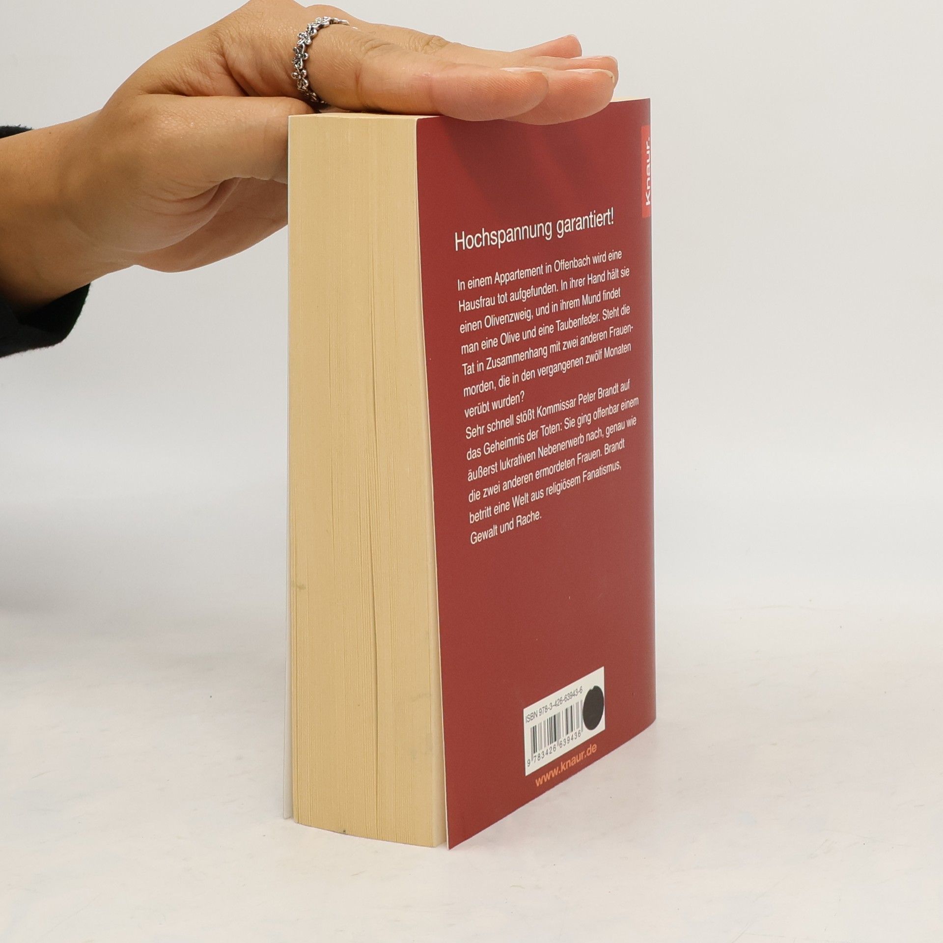 Kommissar Peter Brandt ist gerade aus einem Kurzurlaub mit seiner Freundin, der Staatsanwältin Elvira Klein, zurück, als er mit einem besonders seltsamen Mordfall konfrontiert wird. Am Mainufer in Offenbach wird eine Hausfrau tot aufgefunden. Das Merkwürdige daran: In ihrer Hand hält sie einen Olivenzweig, und in ihrem Mund findet man eine Olive und eine Taubenfeder. Sehr schnell stößt der Kommissar auf das Geheimnis der Toten: Sie ging offenbar einem äußerst lukrativen Nebenerwerb nach, genau wie zwei weitere Frauen, die in den letzten zwölf Monaten ermordet wurden. Peter Brandt betritt eine Welt aus religiösem Fanatismus, Gewalt und Rache.