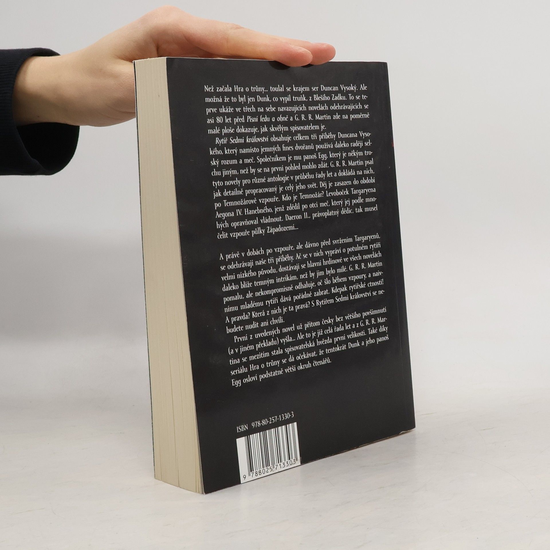 Dlouho před událostmi, které znáte ze Hry o trůny, sedí Targaryenové pevně na Železném trůně. To ovšem neznamená, že v Západozemí panuje klid. Bratrovražedný boj uvnitř vládnoucí dynastie rozpoltil Sedm království. A právě v té době křižuje krajem potulný rytíř ser Duncan Vysoký. Anebo Dunk tupý jako lenochův meč? Všechno je to nějak zamotané, a to včetně původu jeho panoše Egga. Tři uzavřené, ale navazující novely ze světa Hry o trůny představují G. R. R. Martina tak, jak si jej čtenáři zamilovali dávno před slavnou ságou – jako jednoho z nejlepších povídkářů žánru.