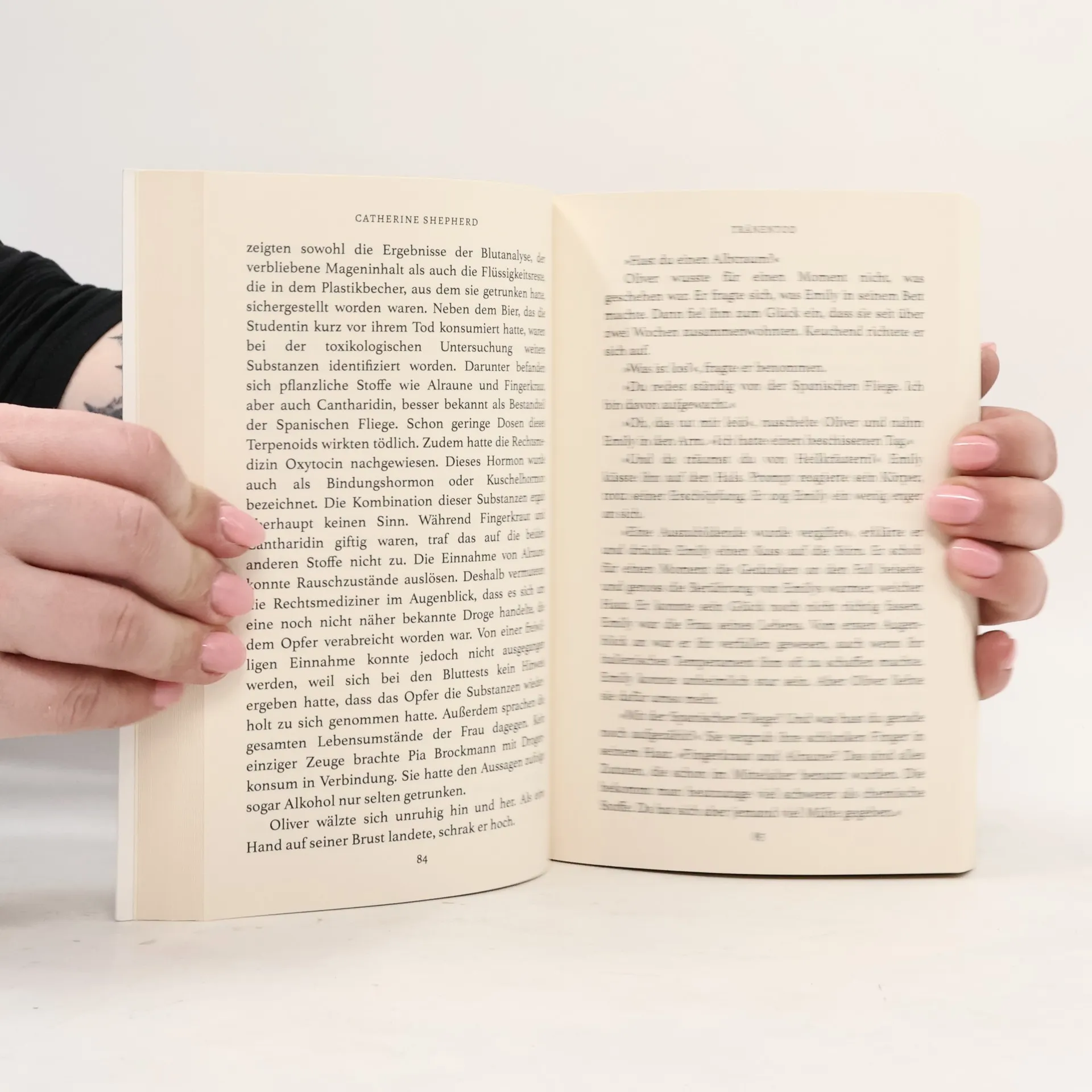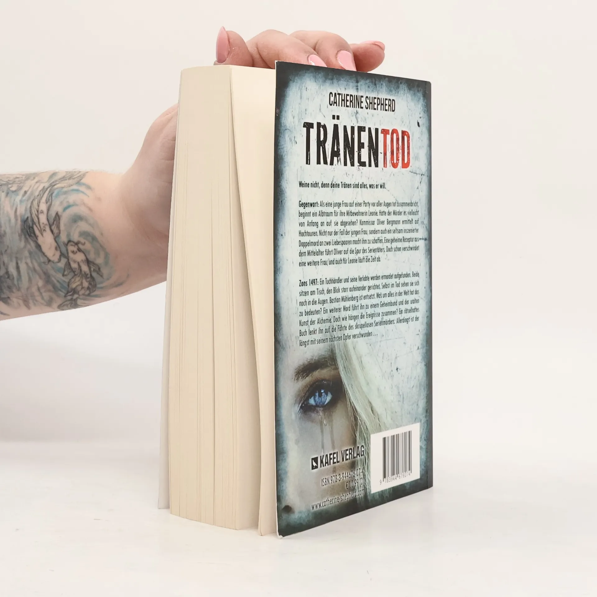 Weine nicht, denn deine Tränen sind alles, was er will. Gegenwart: Als eine junge Frau auf einer Party vor aller Augen tot zusammenbricht, beginnt ein Albtraum für ihre Mitbewohnerin Leonie. Hatte der Mörder es vielleicht von Anfang an auf sie abgesehen? Kommissar Oliver Bergmann ermittelt auf Hochtouren. Nicht nur der Fall der jungen Frau, sondern auch ein seltsam inszenierter Doppelmord an zwei Liebespaaren macht ihm zu schaffen. Eine geheime Rezeptur aus dem Mittelalter führt Oliver auf die Spur des Serientäters. Doch schon verschwindet eine weitere Frau, und auch für Leonie läuft die Zeit ab. Zons 1497: Ein Tuchhändler und seine Verlobte werden ermordet aufgefunden. Beide sitzen am Tisch, den Blick starr aufeinander gerichtet. Selbst im Tod sehen sie sich noch in die Augen. Bastian Mühlenberg ist entsetzt. Was um alles in der Welt hat das zu bedeuten? Ein weiterer Mord führt ihn zu einem Geheimbund und der uralten Kunst der Alchemie. Doch wie hängen die Ereignisse zusammen? Ein rätselhaftes Buch lenkt ihn auf die Fährte des skrupellosen Serienmörders. Allerdings ist der längst mit seinem nächsten Opfer verschwunden … Catherine Shepherds neuer Thriller ist unberechenbar, fesselnd und nichts für schwache Nerven.