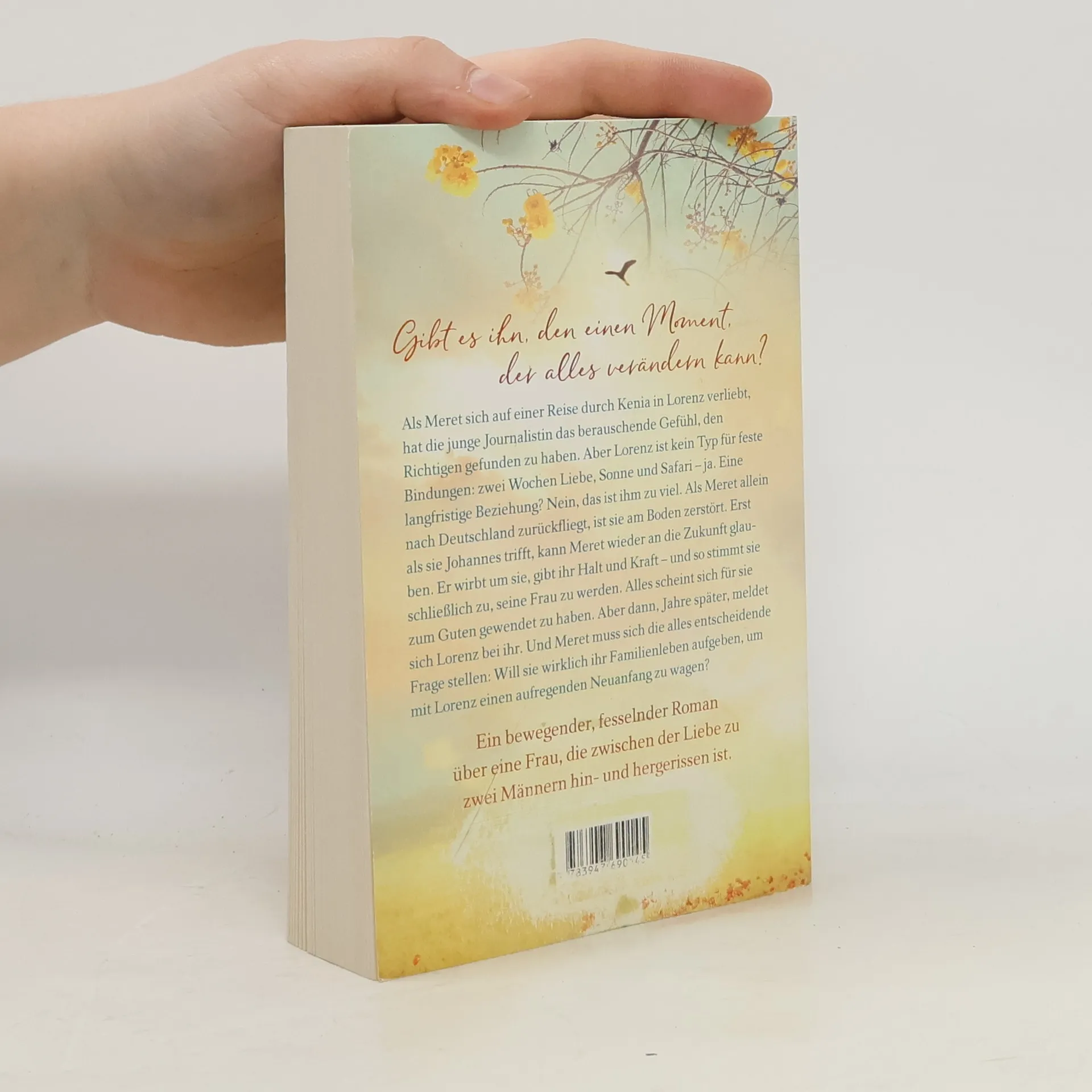 In Kenia lernt Meret den faszinierenden Lorenz kennen. Zum ersten Mal hat die junge Journalistin das berauschende Gefühl, dass alles stimmt – und verliebt sich rückhaltlos! Aber der Dokumentarfilmer ist kein Typ für feste Bindungen: Als Meret nach Deutschland zurückfliegt, lässt er sie ohne Bedauern ziehen. Sie ist am Boden zerstört. Hat er die Einzigartigkeit ihrer Gefühle nicht gespürt? Es fällt Meret schwer, sich ein Leben ohne ihn vorzustellen … Erst als sie Johannes trifft, kann sie wieder an das Glück glauben. Der zuverlässige, liebevolle Jurist gibt ihr Halt und Kraft – bis ein Anruf von Lorenz sie an allem zweifeln lässt, was sie sich aufgebaut hat … Ein eindringlicher Roman über eine Frau, die zwischen der Liebe zu zwei Männern hin- und hergerissen ist.