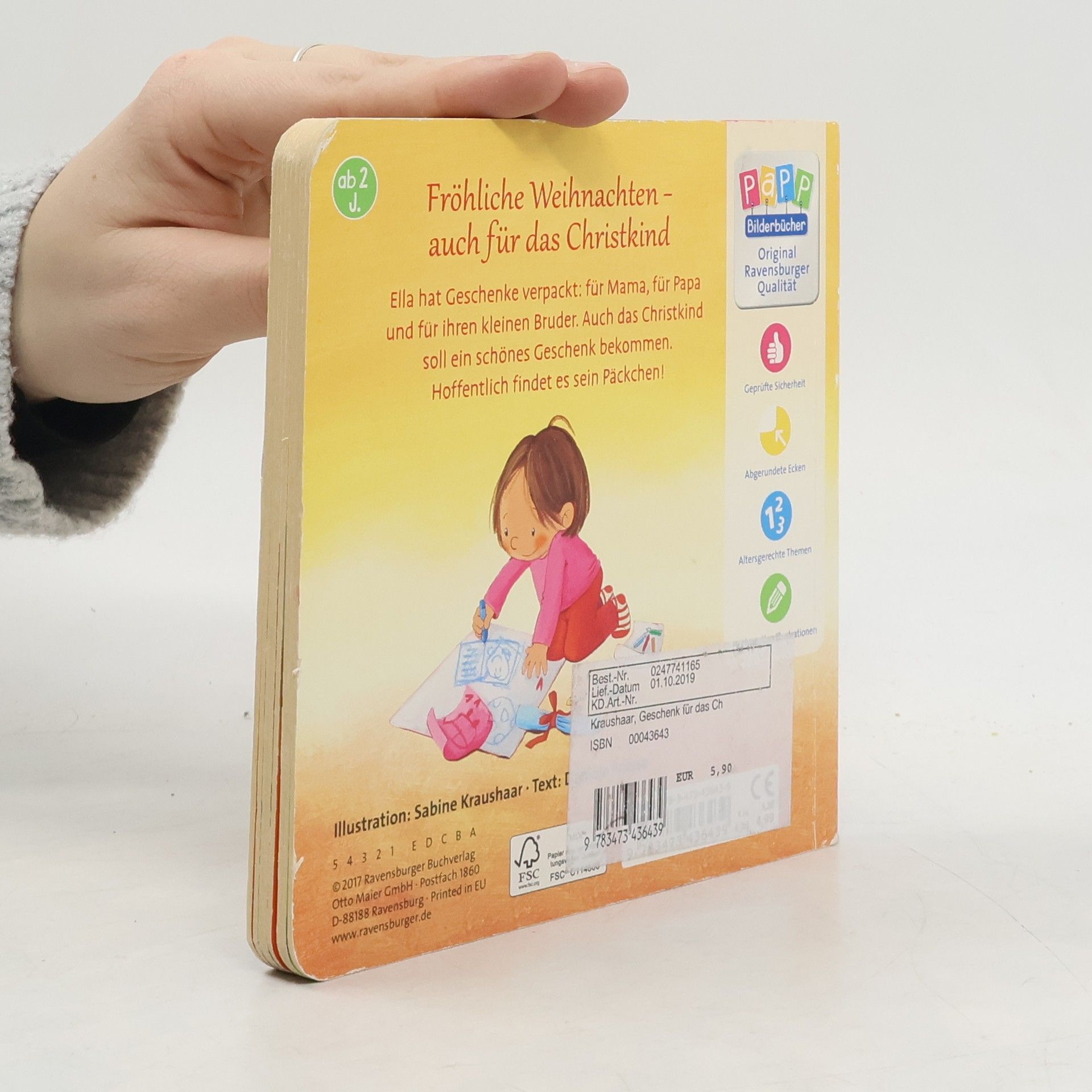 Die kleine Ella freut sich auf Weihnachten und möchte ihre Freude auch mit dem Christkind teilen. Am Weihnachtsabend legt sie ein Päckchen für das Christkind unter den Baum… Eine leicht nachvollziehbare erste Weihnachtsgeschichte für die Kleinsten.