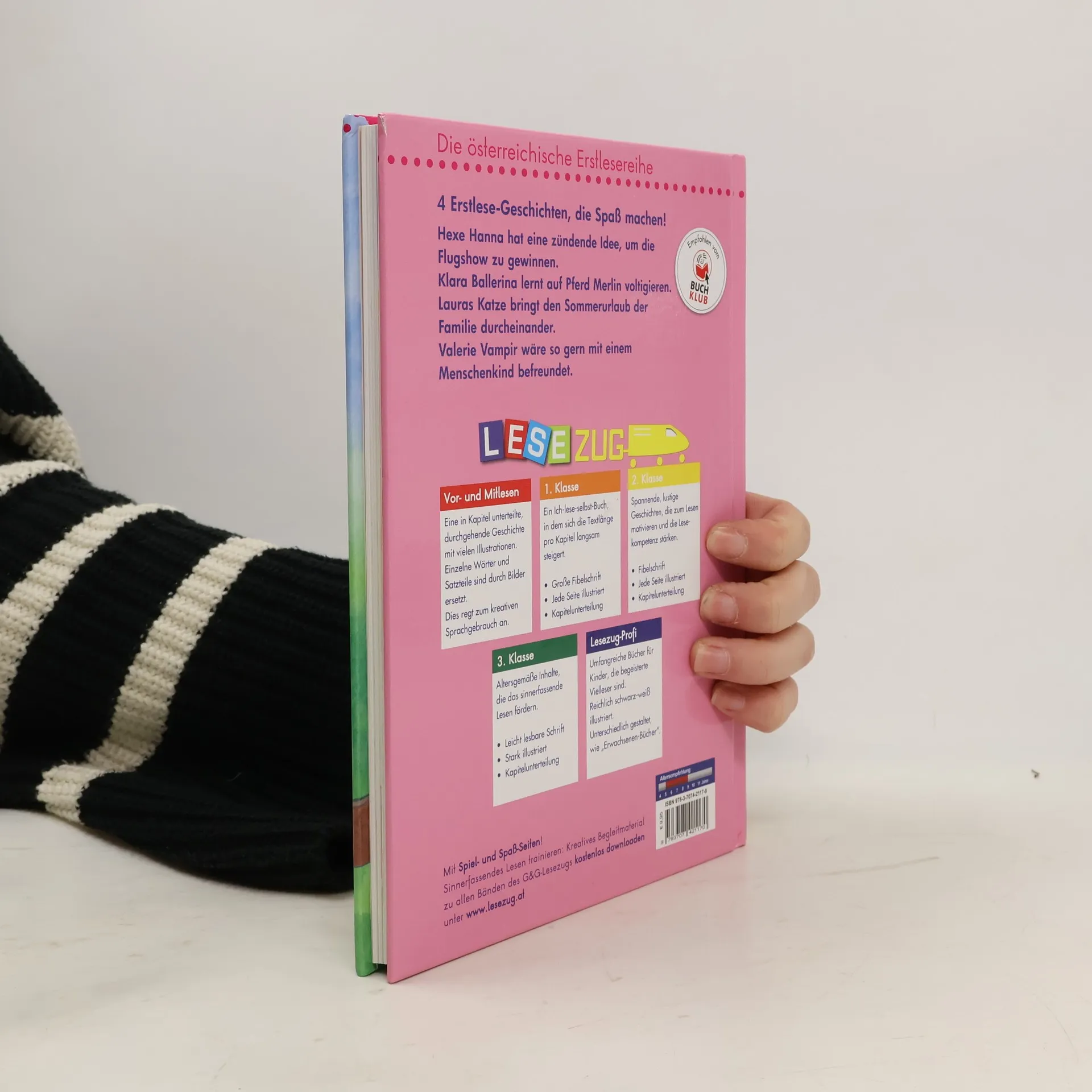 Lesezug-Sammelbänd für die 1. und 2. Klasse: Kinder, die schon lesen können, sollten motiviert werden, diese Lesefähigkeit zu stärken. Die Sammelbände enthalten jeweils 4 kurze und reichhaltig illustrierte Geschichten. Lustige Themen und fröhliche Charaktere verleiten junge Leserinnen und Leser am Ende der 1. / Anfang der 2. Klasse zum Lesen. Geschichten, die Lese-Spaß bringen: Lauras Katze bringt den Sommerurlaub der Familie durcheinander. Klara Ballerina lernt voltigieren auf Pferd Merlin. Hexe Hanna hat eine zündende Idee, um die Flugshow zu gewinnen. Lesespaß für Mädchen Österreichische Fibelschrift 4 neue Lesezug-Geschichten: – Hexe Hanna und die Flugshow – Klara Ballerina auf Trab – Ferien mit Lauras Katze – Ein Freund für Valerie Vampir