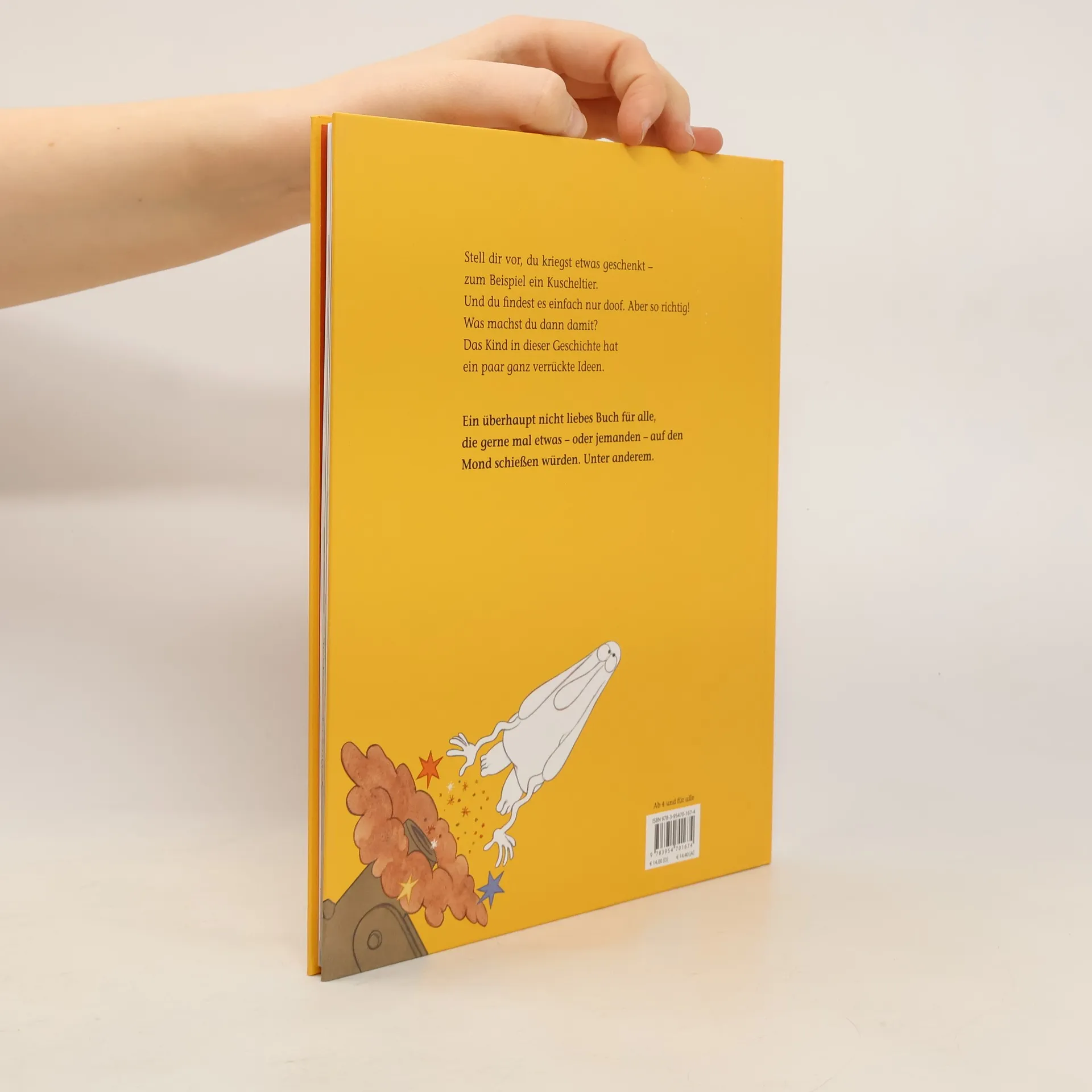 Jeder kennt das: Man bekommt ein … ein …. Ding geschenkt, das man richtig doof findet. So doof, dass man es nur noch loswerden möchte. Auf Nimmerwiedersehen! Weg damit! So geht es dem Jungen in Salah Naouras und Thilo Krapps Bilderbuch. Nur – wohin mit dem Ding? Der Junge lässt seiner Fantasie freien Lauf und verwünscht das Ding an die schaurig-schönsten Orte, die ihm einfallen. Wie das so ist, wenn man etwas – oder jemanden – nicht mag. Und dann ist es wirklich weg. Was nun? Irgendetwas fehlt … Thilo Krapps armes Ding kommt in diesem wilden, bösen Bilderbuch ganz schön rum. Es macht großen Spaß, es auf der Reise zu den schlimmen und abenteuerlichen Orten der Welt zu begleiten. Vor allem, wenn man auch im echten Leben jemanden kennt, den man gelegentlich gerne mal kurz auf den Mond schießen würde.