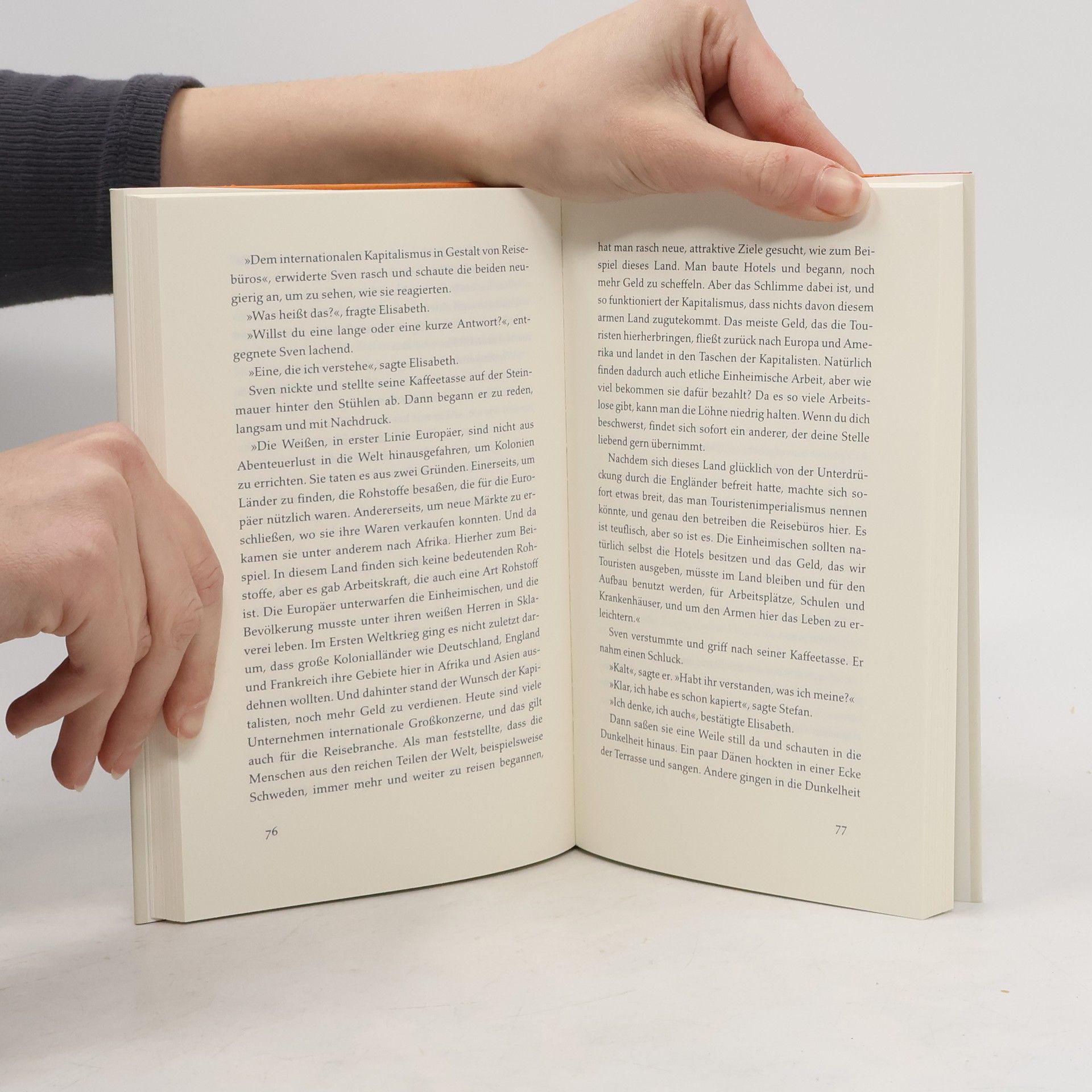 Stefan und Elisabeth treffen sich auf dem Flug nach Afrika kurz nach dem Abitur wieder. Gegen Ende der Schulzeit hatten sie eine flüchtige Beziehung. Während Stefan das Strandleben genießt, will Elisabeth das fremde Land in Afrika verstehen. Sie freundet sich mit einem Lehrer an, der ihr die historischen Hintergründe erklärt, und der einheimische Guide Ndou führt sie durch die ärmsten Viertel. Elisabeth lernt, die Welt und ihr eigenes Leben mit anderen Augen zu sehen. Bereits in Mankells erstem Afrika-Roman sind seine späteren großen Themen versammelt: die Schönheit der Natur, die Überlebenskunst der Einheimischen, die Gedankenlosigkeit der weißen Touristen und die Nachwirkungen des Kolonialismus.