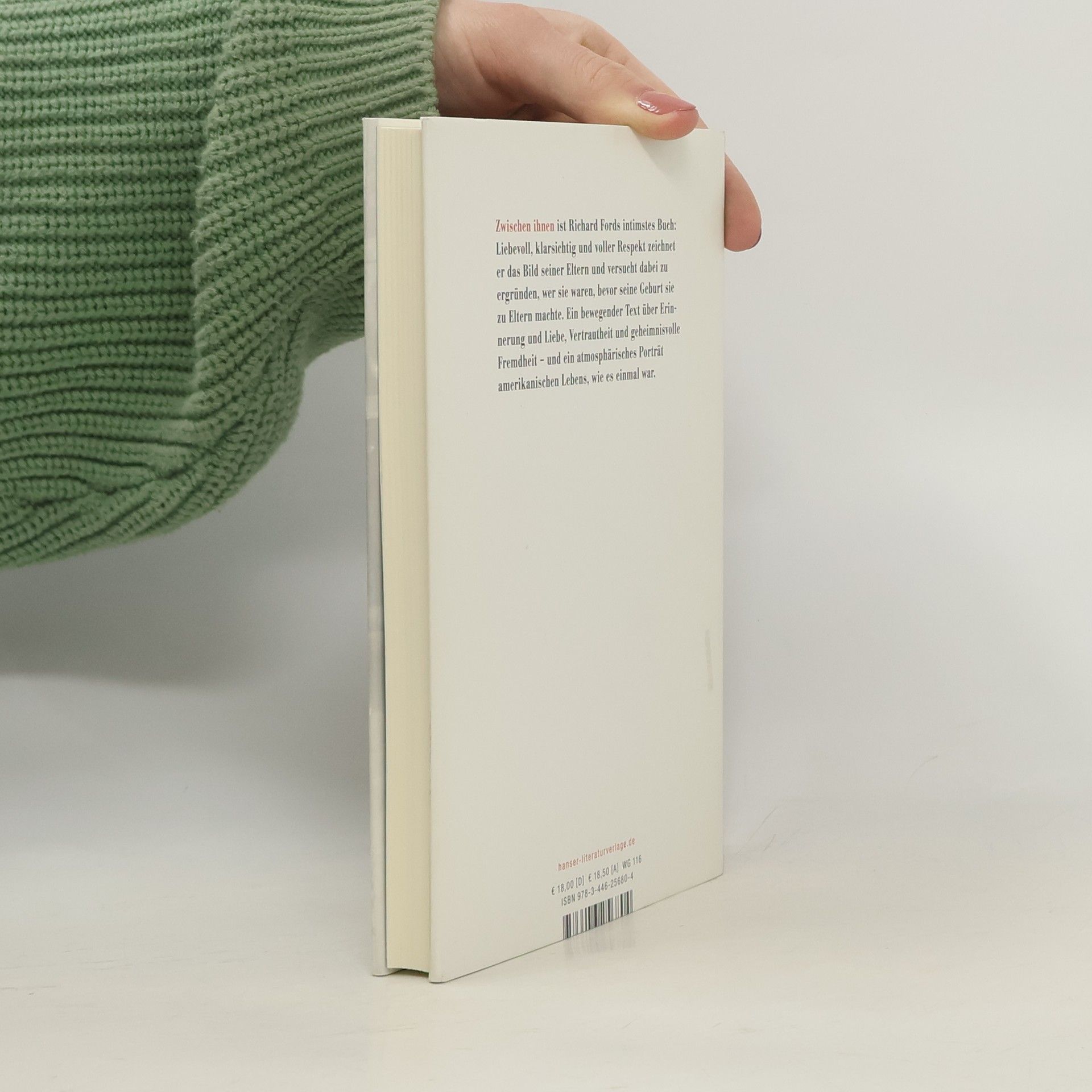 Mit siebzehn verliebt sich Edna Akin aus Arkansas in Parker Ford, einen Jungen vom Land mit den durchscheinend hellblauen Ford-Augen. Sie heiraten und beginnen ein Nomadenleben in den Südstaaten der USA – Parker arbeitet als Handlungsreisender. Die 30er Jahre ziehen vorbei wie ein langes Wochenende, ungezählte Meilen, Cocktails, Hotelzimmer: New Orleans, Texarcana, Memphis. Die Geborgenheit, die es in ihrer Welt, dem Amerika der frühen Ford-Romane, nicht gibt, finden sie beieinander. Dann kommt ein einziges spätes Kind zur Welt – und alles ändert sich. „Zwischen ihnen“ ist Richard Fords intimstes Buch: ein literarisches Memoir über seine Eltern und ein atmosphärisches Porträt des Lebens in den USA Mitte des 20. Jahrhunderts.