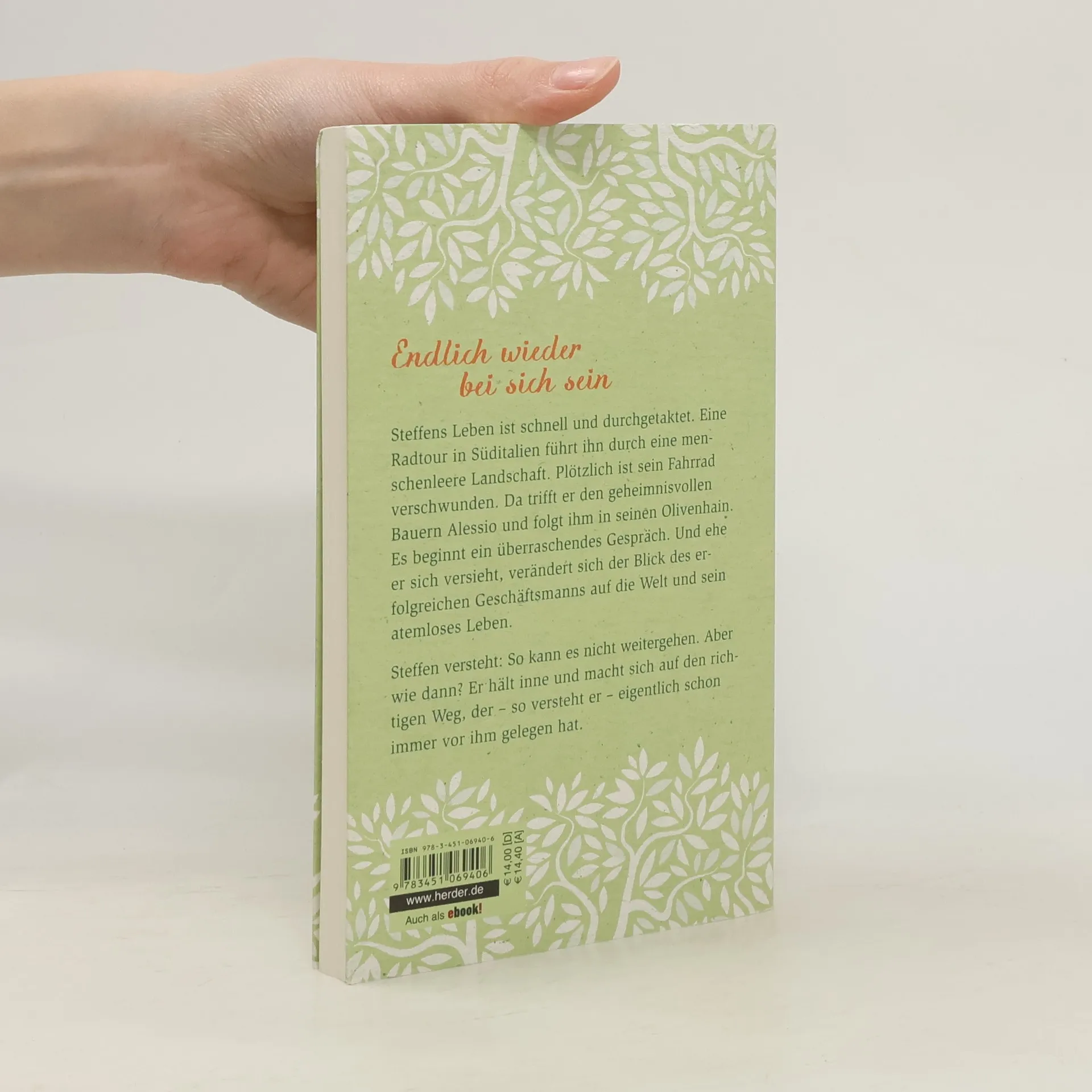Steffens Leben ist schnell und durchgetaktet. Eine Radtour in Süditalien führt ihn durch eine menschenleere Landschaft. Plötzlich ist sein Fahrrad verschwunden. Da trifft er den geheimnisvollen Bauern Alessio und folgt ihm in seinen Olivenhain. Es beginnt ein überraschendes Gespräch. Und ehe er sich versieht, verändert sich der Blick des erfolgreichen Geschäftsmanns auf die Welt und sein atemloses Leben. Steffen versteht: So kann es nicht weitergehen. Aber wie dann? Er hält inne und macht sich auf den richtigen Weg der eigentlich schon immer vor ihm gelegen hat.