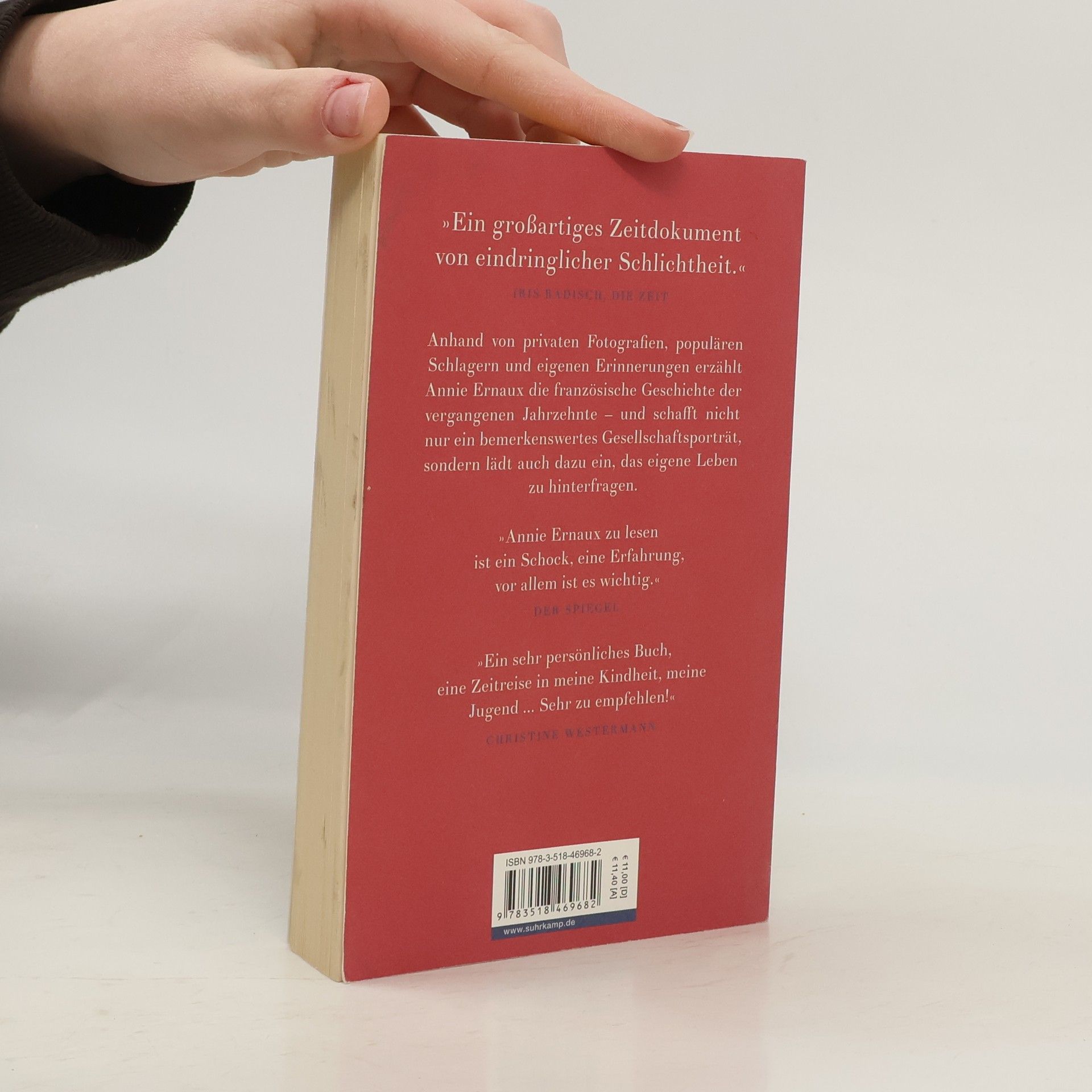 Nobelpreis für Literatur 2022 Geschichte ihrer selbst, Gesellschaftsporträt, universelle Chronik: Annie Ernaux’ aufsehenerregendes Werk wirkt von Beginn an weit über die französischen Grenzen hinaus. Eine faszinierende Einladung, das eigene Leben zu hinterfragen: »Annie Ernaux zu lesen ist ein Schock, eine Erfahrung, vor allem ist es wichtig.« Der Spiegel Kindheit in der Nachkriegszeit, Algerienkrise, die Karriere an der Universität, das Schreiben, eine prekäre Ehe, die Mutterschaft, de Gaulle, das Jahr 1968, Krankheiten und Verluste, die sogenannte Emanzipation der Frau, Frankreich unter Mitterrand, die Folgen der Globalisierung, die uneingelösten Verheißungen der Nullerjahre, das eigene Altern. Anhand von Fotografien, Erinnerungen und Aufzeichnungen, von Wörtern, Melodien und Gegenständen vergegenwärtigt Annie Ernaux die Jahre, die vergangen sind. Und dabei schreibt sie ihr Leben – unser Leben, das Leben – in eine völlig neuartige Erzählform ein: »Annie Ernaux ist die Königin der neuen autobiographischen Literatur.« Die Zeit