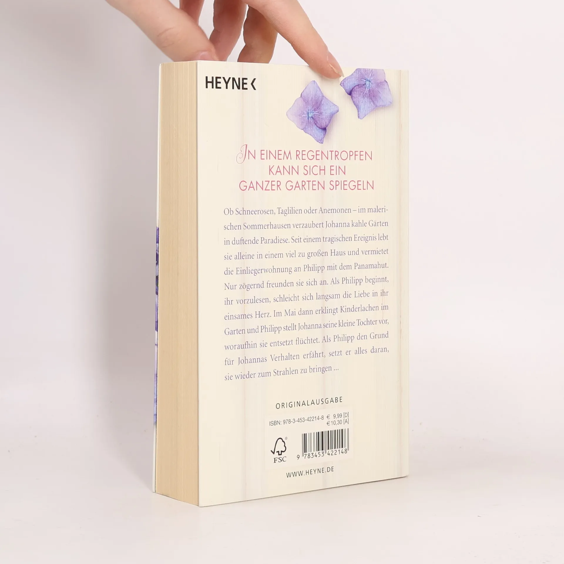 In einem Regentropfen kann sich ein ganzer Garten spiegeln Ob Schneerosen, Taglilien oder Anemonen – im malerischen Sommerhausen verzaubert Johanna kahle Gärten in duftende Paradiese. Seit einem tragischen Ereignis lebt sie alleine in einem viel zu großen Haus und vermietet die Einliegerwohnung an Philipp mit dem Panamahut. Nur zögernd freunden sie sich an. Als Philipp beginnt, ihr vorzulesen, schleicht sich langsam die Liebe in ihr einsames Herz. Im Mai dann erklingt Kinderlachen im Garten und Philipp stellt Johanna seine kleine Tochter vor, woraufhin sie entsetzt flüchtet. Als Philipp den Grund für Johannas Verhalten erfährt, setzt er alles daran, sie wieder zum Strahlen zu bringen ...