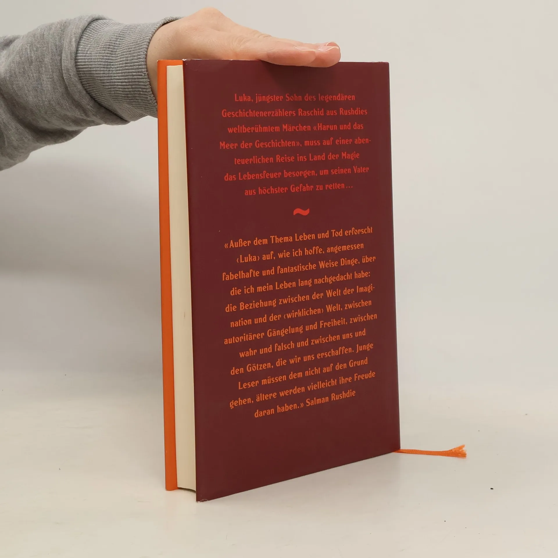 Luka, jüngster Sohn des legendären Geschichtenerzählers Raschid aus Rushdies weltberühmtem Märchen «Harun und das Meer der Geschichten», muss auf einer abenteuerlichen Reise ins Land der Magie das Lebensfeuer besorgen, um seinen Vater aus höchster Gefahr zu retten ... «Außer dem Thema Leben und Tod erforscht ‹Luka› auf, wie ich hoffe, angemessen fabelhafte und fantastische Weise Dinge, über die ich mein Leben lang nachgedacht habe: die Beziehung zwischen der Welt der Imagination und der ‹wirklichen› Welt, zwischen autoritärer Gängelung und Freiheit, zwischen wahr und falsch und zwischen uns und den Götzen, die wir uns erschaffen. Junge Leser müssen dem nicht auf den Grund gehen, ältere werden vielleicht ihre Freude daran haben.» Salman Rushdie