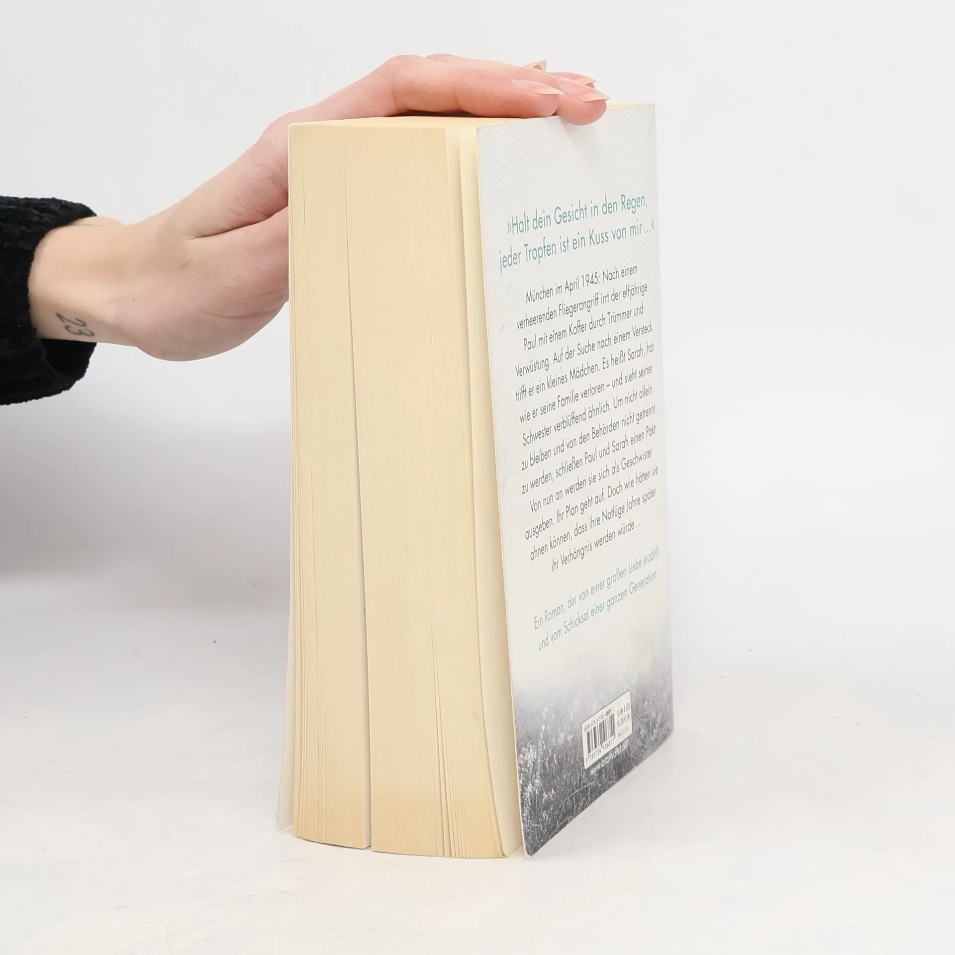 »Halt dein Gesicht in den Regen, jeder Tropfen ist ein Kuss von mir ...« München, April 1945. Nach einem verheerenden Fliegerangriff irrt der elfjährige Paul mit einem Koffer durch Trümmer und Verwüstung. Auf der Suche nach einem Versteck trifft er ein kleines Mädchen. Sie heißt Sarah, hat wie er ihre Familie verloren – und sieht seiner Schwester verblüffend ähnlich. Um nicht allein zu bleiben und von den Behörden nicht getrennt zu werden, schließen Paul und Sarah einen Pakt: Von nun an werden sie sich als Geschwister ausgeben. Ihr Plan geht auf. Doch wie hätten sie ahnen können, dass ihre Notlüge Jahre später ihr Verhängnis werden würde …
