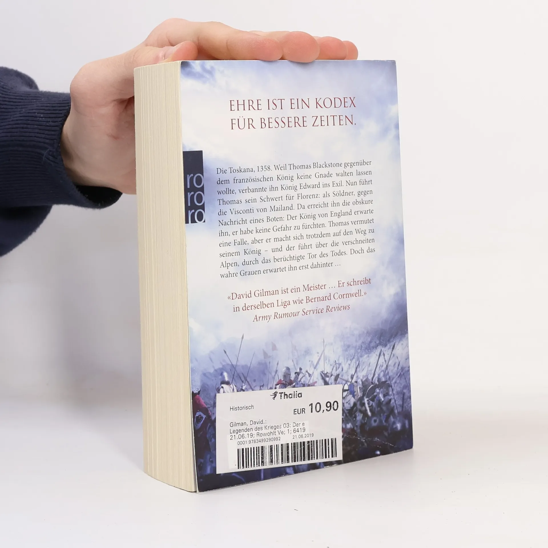 Ehre ist ein Kodex für bessere Zeiten. Die Toskana, 1358. Weil Thomas Blackstone gegenüber dem französischen König keine Gnade walten lassen wollte, verbannte ihn König Edward ins Exil. Nun führt Thomas sein Schwert für Florenz: als Söldner, gegen die Visconti von Mailand. Da erreicht ihn die obskure Nachricht eines Boten: Der König von England erwarte ihn, er habe keine Gefahr zu fürchten. Thomas befürchtet eine Falle, aber er macht sich trotzdem auf den Weg zu seinem König – und der führt über die verschneiten Alpen, durch das berüchtigte Tor des Todes. Doch das wahre Grauen erwartet ihn erst dahinter …