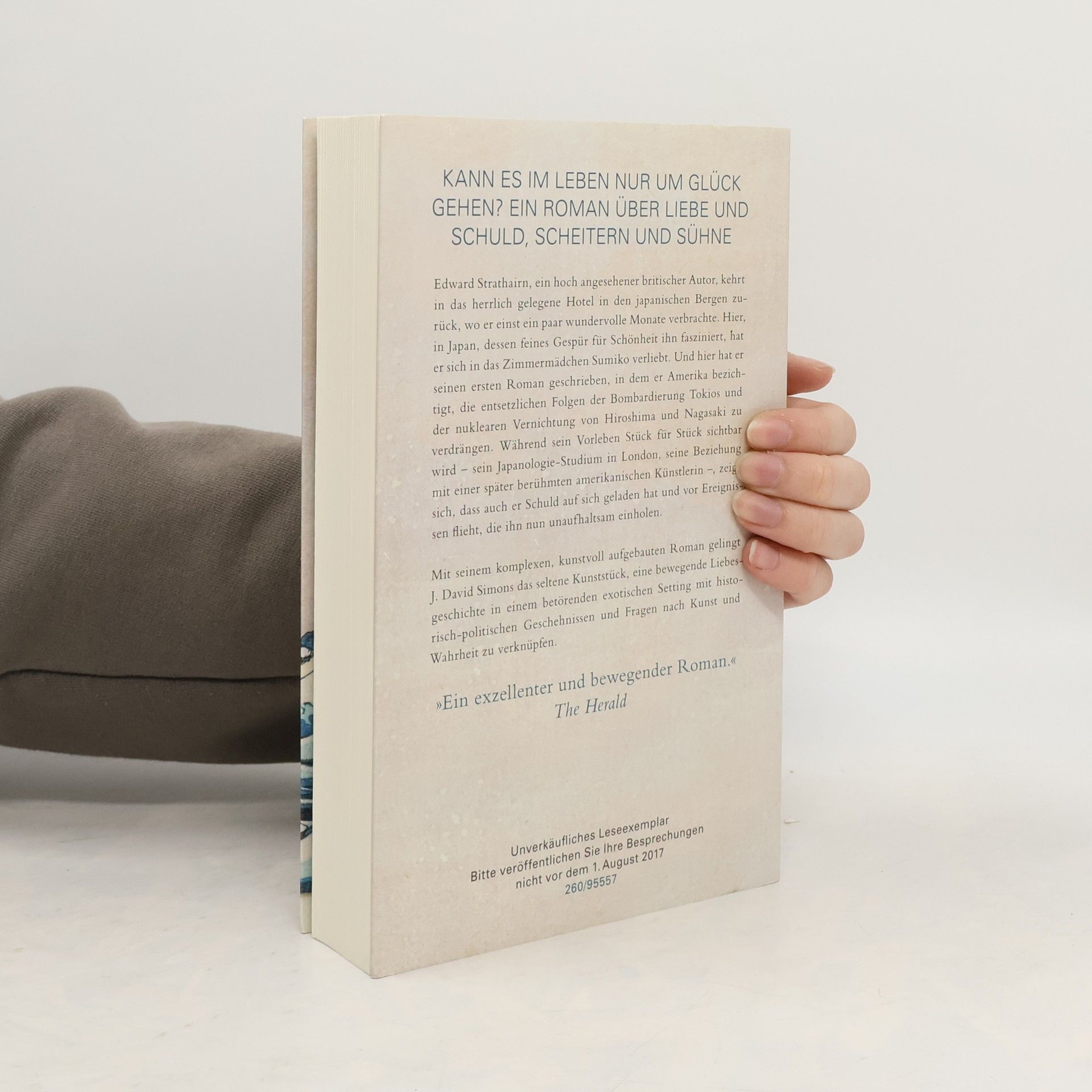 Ein hoch angesehener britischer Autor kehrt in das herrlich gelegene Hotel in den japanischen Bergen zurück, wo er einst einen wundervollen Winter verbrachte, frisch verliebt in das Zimmermädchen Sumiko. Hier hatte er seinen ersten Bestseller geschrieben, in dem er Amerika bezichtigte, die entsetzlichen Folgen der Bombardierung Tokios und der nuklearen Vernichtung von Hiroshima und Nagasaki zu verdrängen. Während sein Vorleben Stück für Stück sichtbar wird – sein Japanologie-Studium in London, seine Beziehung zu einer berühmten amerikanischen Künstlerin –, zeigt sich jedoch, dass auch er Schuld auf sich geladen hat und vor vergangenen Ereignissen auf der Flucht ist, die ihn nun unaufhaltsam einholen. Mit seinem komplexen, kunstvoll aufgebauten Roman gelingt J. David Simons das seltene Kunststück, eine bewegende Liebesgeschichte mit einer historisch-politischen Ebene und Fragen nach Kunst und Wahrheit vor einem betörend-exotischen Setting zu kombinieren, das durch einen schrecklichen Krieg fast ausgelöscht wurde.