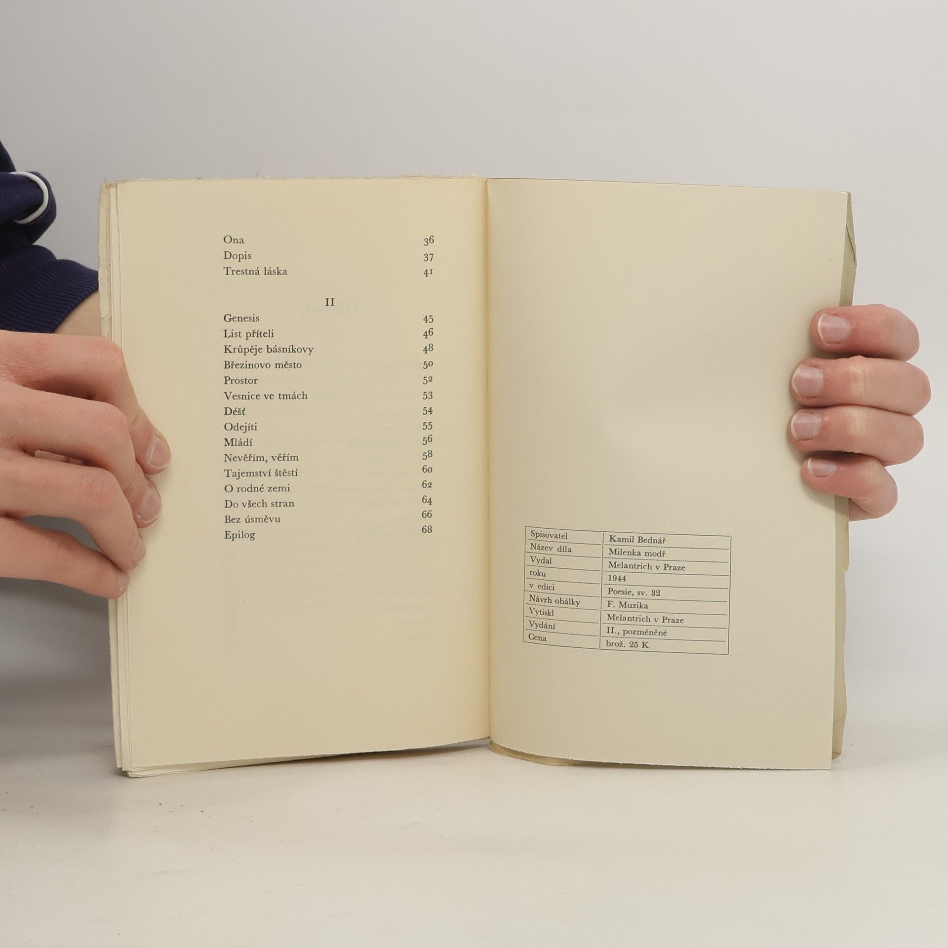 Soubor milostných básní Kamila Bednáře, prvně vyšel v roce 1939.