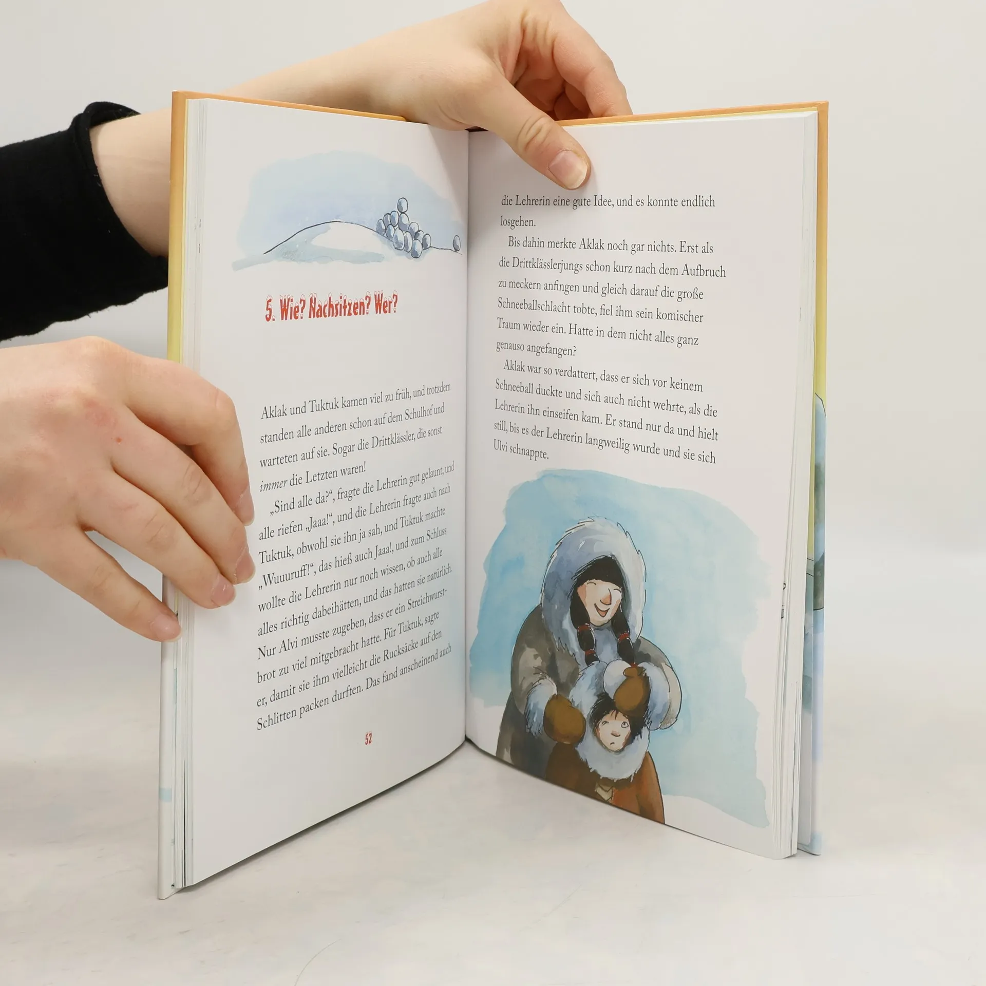 Der kleine Eskimo – zum Dahinschmelzen schön! Weit, weit im Norden, wo Schnee und Eis auch im Sommer nicht schmelzen, da wohnt der kleine Eskimo. Zusammen mit seiner besten Freundin Iklik freut er sich schon riesig auf die große Schul-Schnitzeljagd. Doch was ist das? Die Hinweise und Rätsel, die zu lösen sind, ergeben gar keinen Sinn! Hat das etwa Aklaks Lehrerin vermasselt oder steckt da jemand anderes dahinter? Eine Geschichte von Aklak, dem kleinen Eskimo, und dem lustigsten Schulausflug der Welt. Ausstattung: Mit fbg. Illustrationen