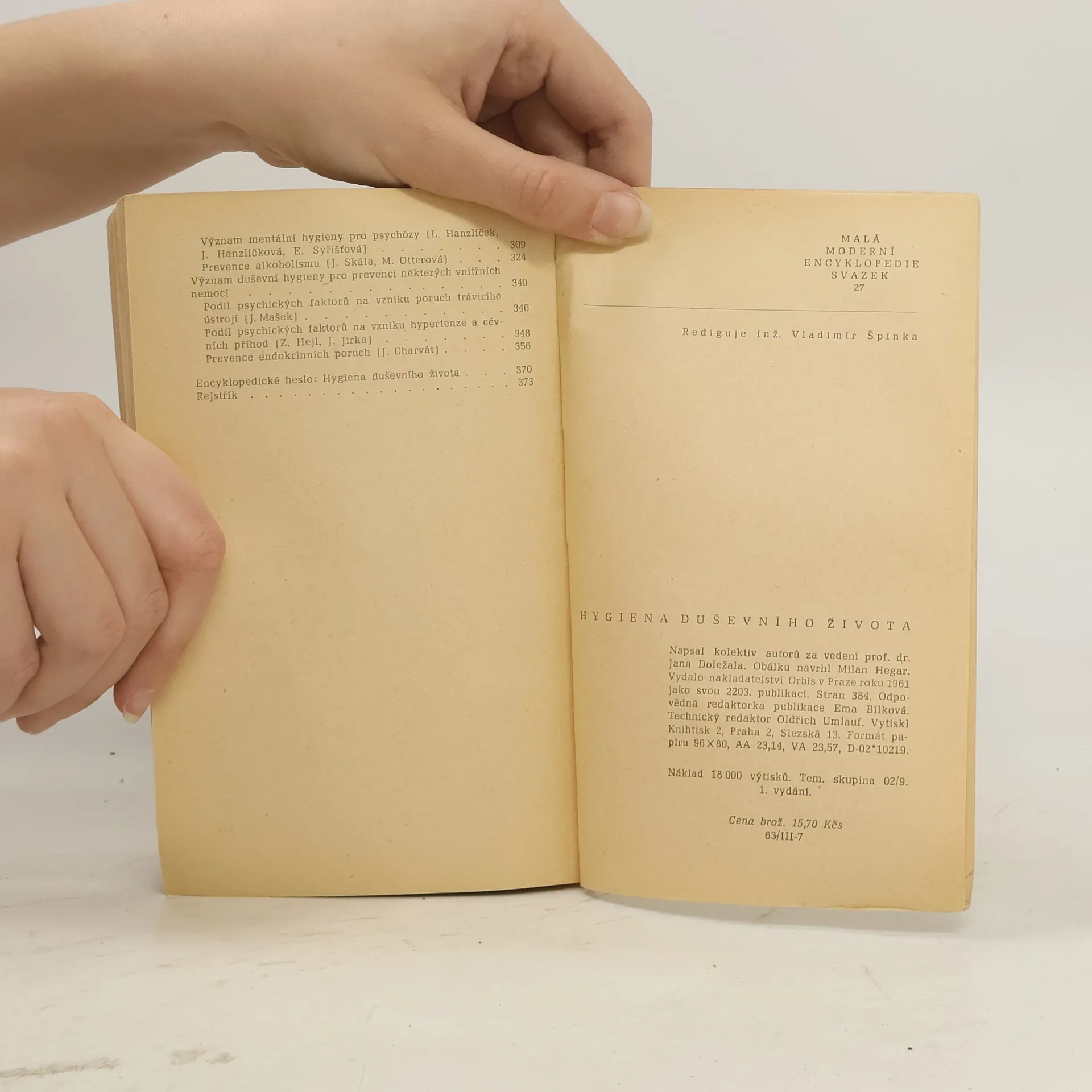 Kniha objasňuje pojem a hlavní zásady duševní hygieny. V řadě kapitol se zaměřuje na praktickou aplikaci ve výchově, běžném denním životě a práci. Věnuje pozornost také prevenci psychických poruch jejichž závislost na duševním životě je prokázána.