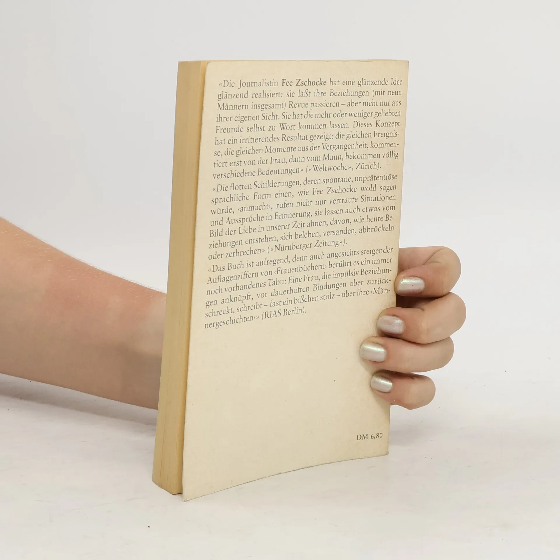 In diesen »Männergeschichten« lässt die gefeierte Autorin Fee Zschocke ihre vergangenen Beziehungen Revue passieren – zuerst aus ihrer eigenen Sicht, dann aus der Sicht der ehemaligen Liebhaber. »Eine Art doppelter Buchführung: Nicht nur Fee Zschocke darf einen Blick zurück werfen, auch die Geliebten von einst kommen zu Wort«, schrieb der Playboy. Damit die Schilderungen nicht zu einer Aufrechnung werden, hat die Autorin ihre Version zuerst geschrieben. Erst nach dem Tonband-Interview mit dem Partner konnte dieser dann ihre Fassung lesen – wenn er wollte. So entstanden unterschiedliche Geschichten, die klarmachen, wie verschieden wir Liebesbeziehungen erleben – und auch, wie sehr wir dazu neigen, unangenehme Erlebnisse zu verdrängen. Die Erinnerung verfälscht, rückt zurecht, löscht aus, schönt oder lässt nur das Negative zu. „Die Journalistin Fee Zschocke hat eine glänzende Idee glänzend realisiert: Sie läßt ihre Beziehungen [....] Revue passieren – aber nicht nur aus ihrer eigenen Sicht.« – Weltwoche Jovana Reisingers Vorwort über die heilende Kraft der Entenherzen bei Liebeskummer rundet die Neuausgabe dieses Klassikers über die Irrungen und Wirrungen moderner Beziehungen ab.