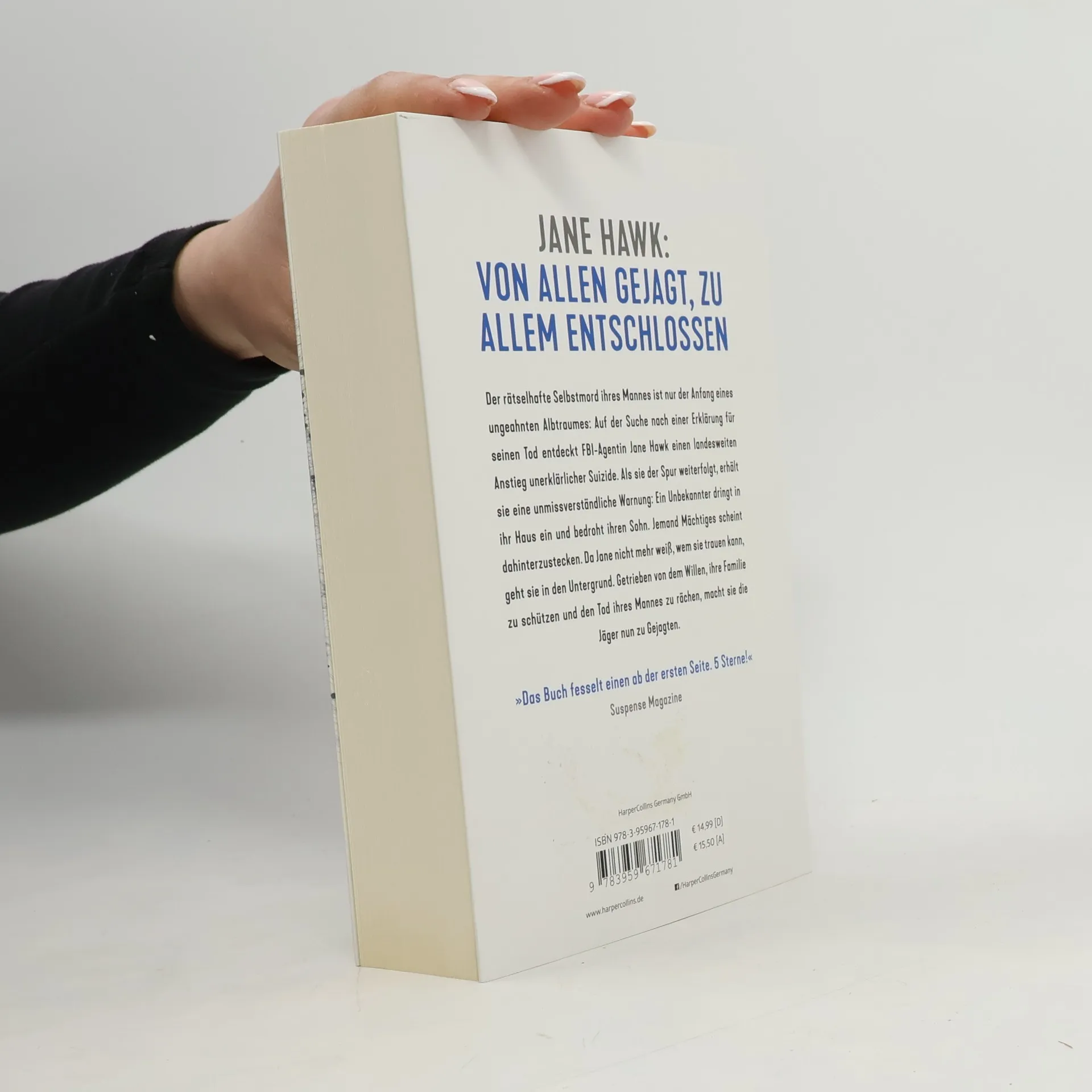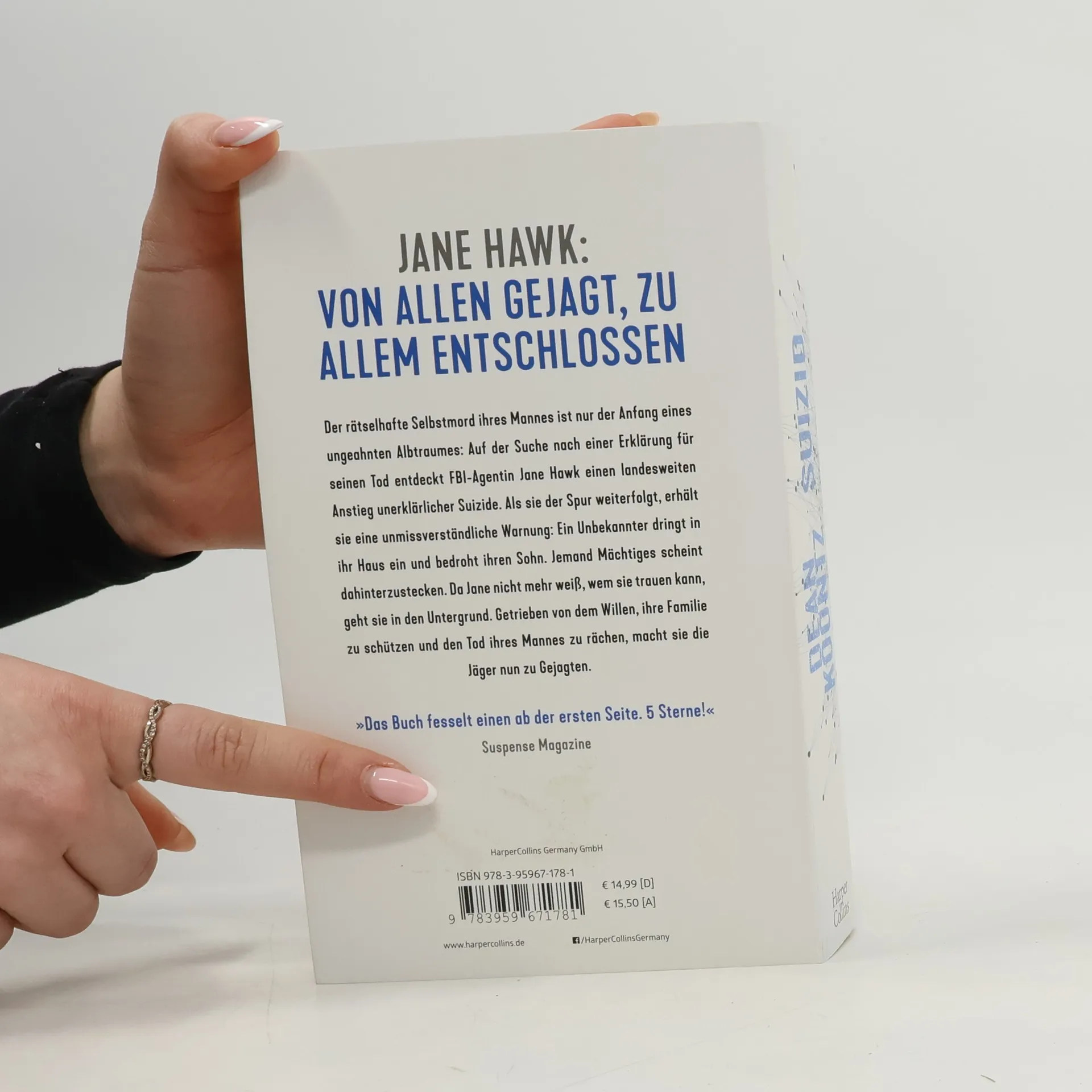 Der rätselhafte Selbstmord ihres Mannes ist der Beginn eines Albtraumes für FBI-Agentin Jane Hawk. Auf der Suche nach einer Erklärung entdeckt sie einen landesweiten Anstieg unerklärlicher Suizide. Während sie der Spur weiter folgt, erhält sie eine bedrohliche Warnung: Ein Unbekannter dringt in ihr Haus ein und bedroht ihren Sohn. Es scheint, als stecke jemand Mächtiges hinter diesen Ereignissen. Da Jane nicht mehr weiß, wem sie trauen kann, geht sie in den Untergrund. Getrieben von dem Willen, ihre Familie zu schützen und den Tod ihres Mannes zu rächen, wird sie zur Gejagten. „Dean Koontz schreibt Pageturner. Thriller, die einen fesseln und alles um einen herum vergessen lassen. Dabei trifft er unsere Herzen und unsere Nerven.“ – The Washington Post Book Review „Der erste Teil einer neuen Serie von Bestsellerautor Dean Koontz ist toller Lesestoff für Freunde von actionreichen, schnellen, leicht futuristischen Thrillern: Der Kampf der toughen Jane Hawk gegen eine übermächtige Verschwörung reißt den Leser sofort mit.“ – Literaturkalender FAZ „Der rasant vorangetriebene Thriller mit Gänsehaut-Effekt wandelt auf einem schmalen Grat von gewaltsamer Selbstjustiz mit einer toughen Protagonistin, die sich gegen skrupellose Goliath-Schurken durchsetzen muss. Vorwiegend gradlinig und mit diversen Tempiwechseln erzählt, vermag der Pageturner mit SciFi-Elementen zugleich zu ängstigen und zu fesseln.“ – ekz. bibliotheksservice