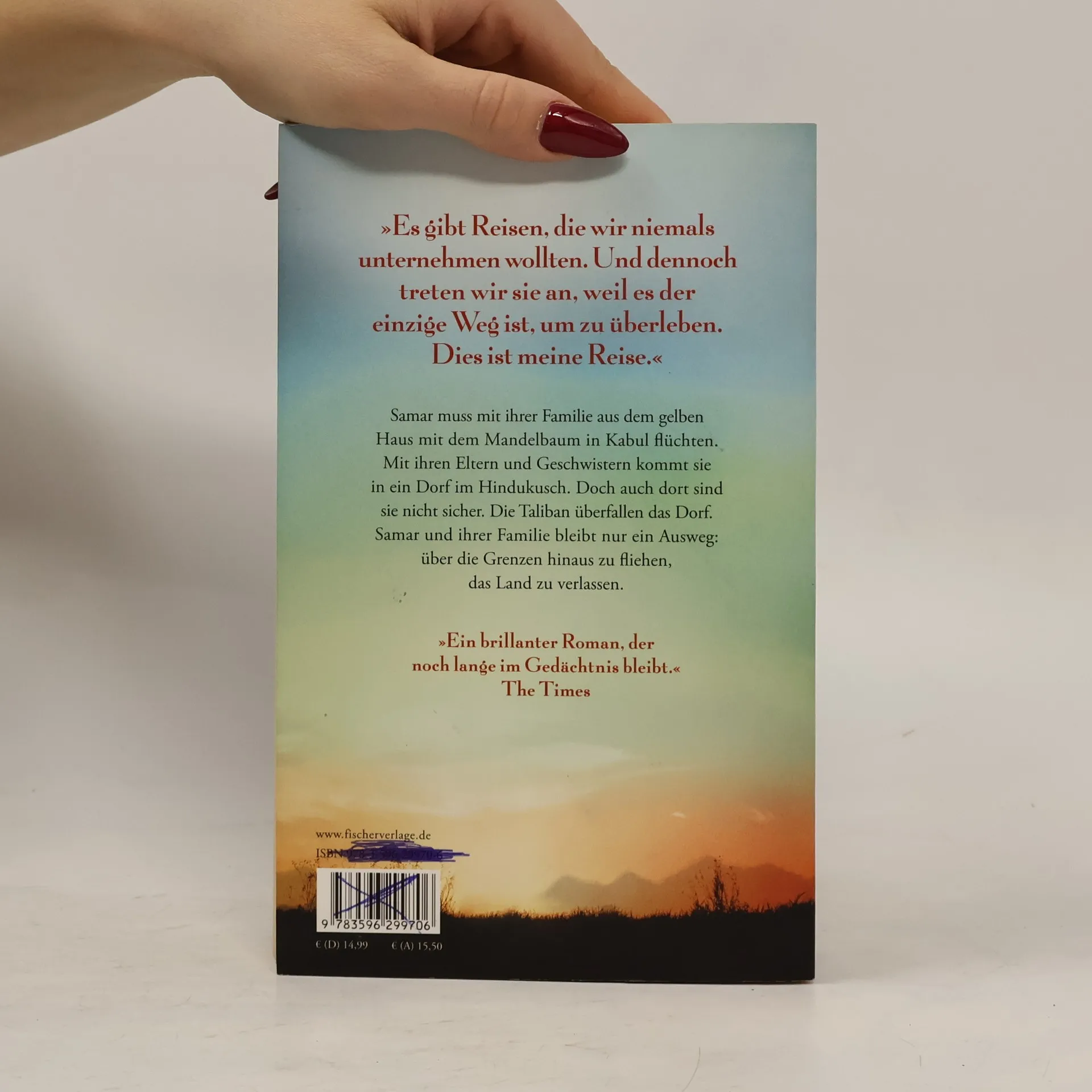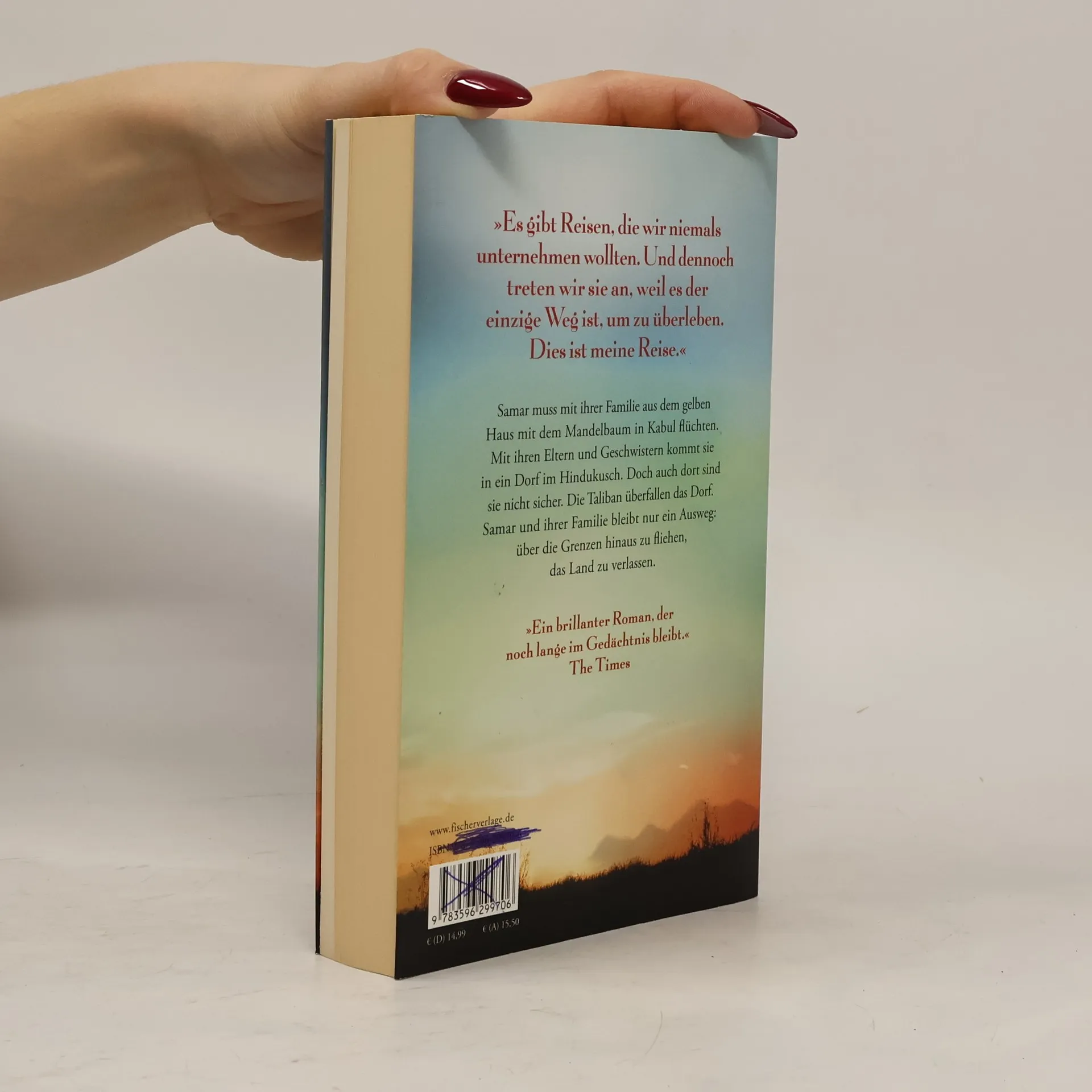 Der große Roman über die Flucht eines Mädchens aus Afghanistan »Es gibt Reisen, die wir niemals unternehmen wollten. Und dennoch treten wir sie an, weil es der einzige Weg ist, um zu überleben. Dies ist meine Reise.« Samar muss mit ihrer Familie aus dem gelben Haus mit dem Mandelbaum in Kabul flüchten. Mit ihren Eltern und Geschwistern kommt sie in ein Dorf im Hindukusch. Doch auch dort bricht der Schrecken ein, der für Samar jetzt plötzlich ein Gesicht bekommt: Die Taliban überfallen das Dorf. Samars Familie bleibt nur ein Ausweg: über die Grenzen hinaus zu fliehen, das Land zu verlassen. Wird Samar jemals in der Freiheit ankommen? »Manche Dinge können wir nicht, werden wir nicht vergessen. Sie reisen mit uns – bis zum Schluss.« »Eine Geschichte, die an Hosseinis Drachenläufer erinnert. Sehr berührend!« IMAGE »Ein brillanter Roman, der noch lange im Gedächtnis bleibt.« The Times